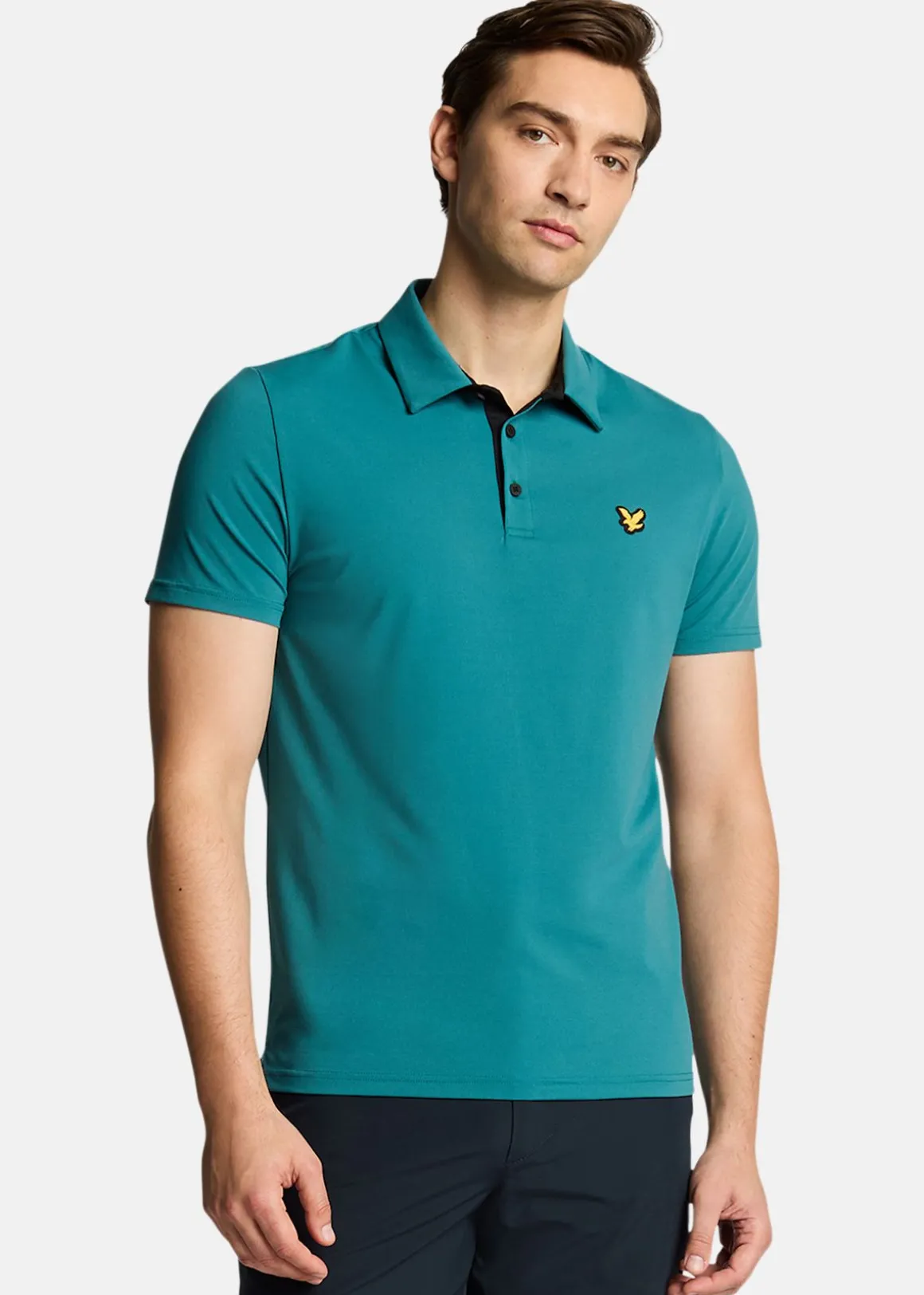 Kontrastknappslå Pikétröjan är ett sofistikerat val för herrgolfkläder, som kombinerar funktionalitet med elegans. Den har en förfinad kontrastknappslå och en slående gyllene broderad örn på vänster bröst, vilket framhäver hantverk och stil. Tillverkad av 84% polyester och 16% spandex, erbjuder den flexibilitet och komfort. Den vanliga, skräddarsydda passformen säkerställer ett polerat utseende, vilket gör den idealisk både på och utanför golfbanan. Detta mångsidiga plagg matchar enkelt med skräddarsydda shorts eller byxor.