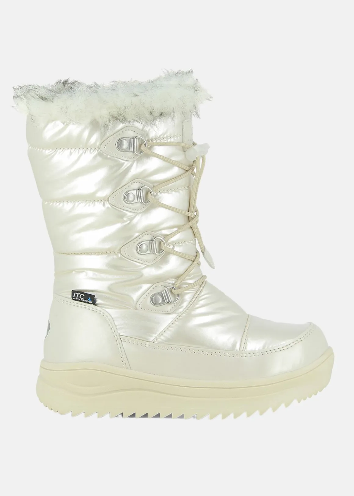Dotorp är en trendig hög vinterstövel designad för junioranvändare. Den har en taggig sula för förbättrat grepp och stabilitet. Stöveln är behandlad med vattentät ITC-teknologi, vilket säkerställer att fötterna förblir torra i blöta förhållanden. Inuti ger ett mjukt faux pälsfoder komfort under kallt väder. Den praktiska dragkedjan på insidan möjliggör enkel på- och avtagning, medan en reflekterande patch på hälen ökar synligheten i svagt ljus. Dessutom är mellansulan tillverkad av 70% återvunnen PET, vilket gör den till ett miljövänligt val.