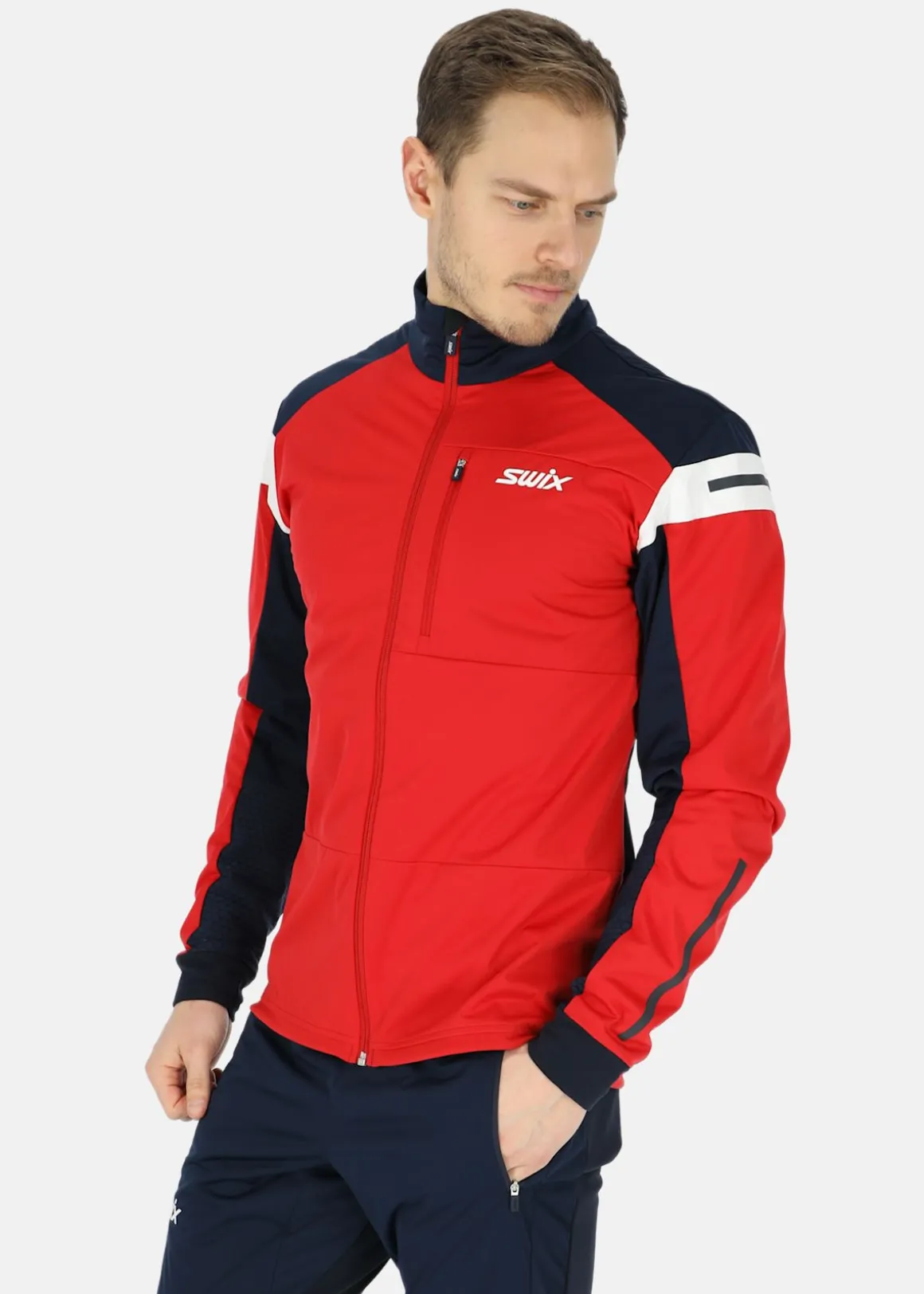 Vind- och vattenavvisande jacka med en normal passform och slitstarkt material perfekt för längdskidåkning och träning. Tidlös design med reflekterande detaljer och YKK-dragkedjor.