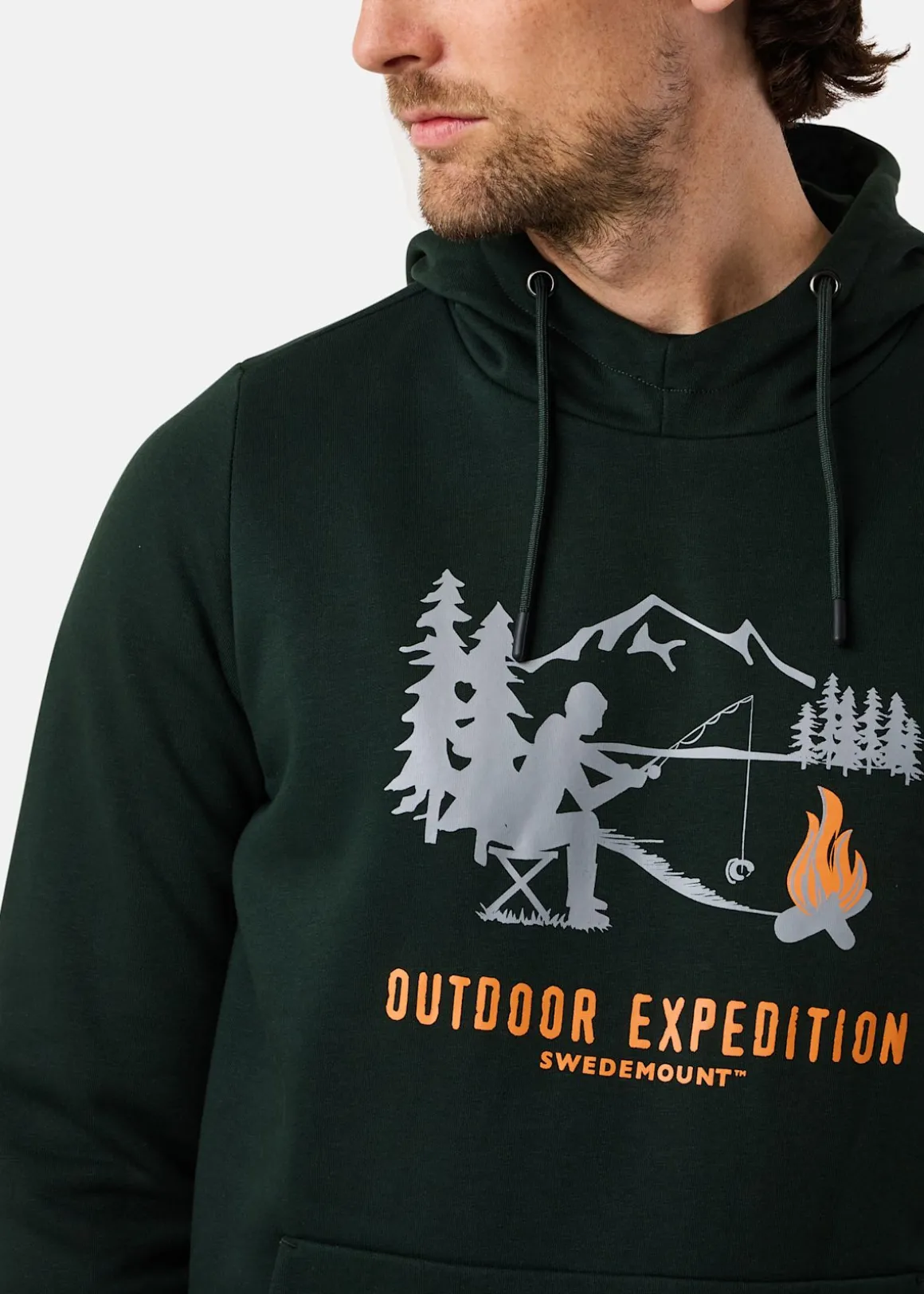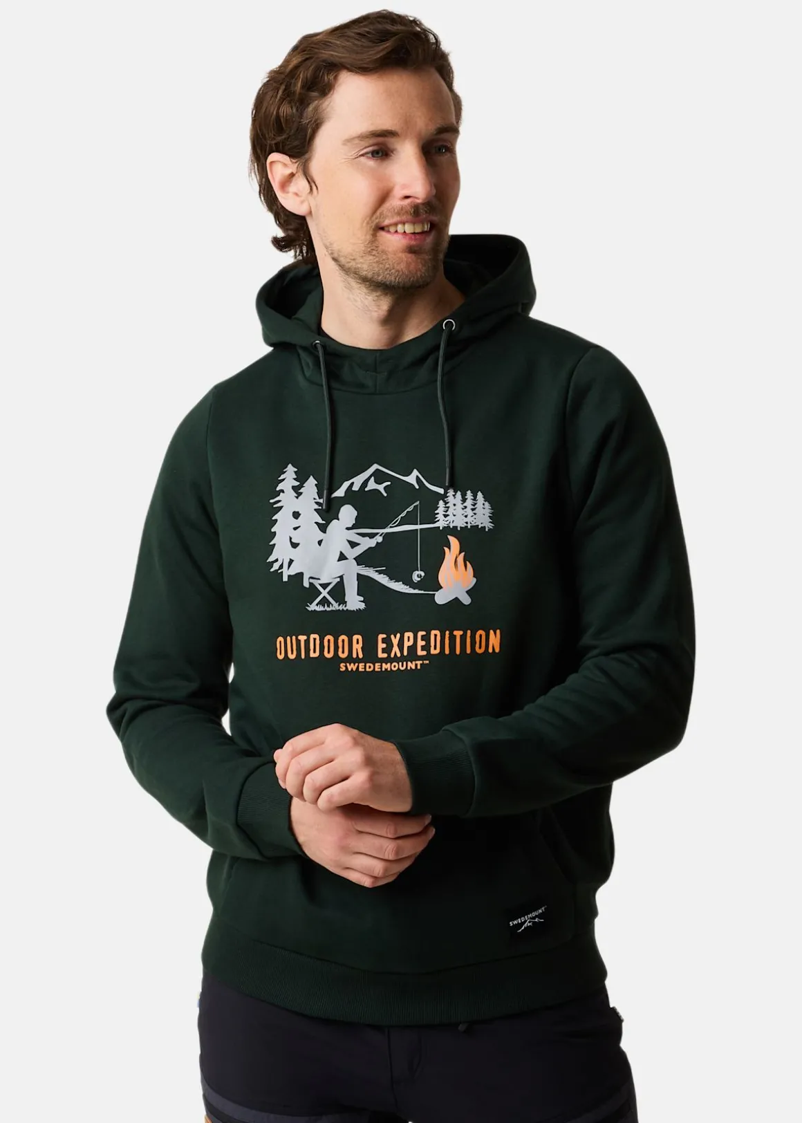 Mjuk tröja med justerbar huva och en stor ficka fram.