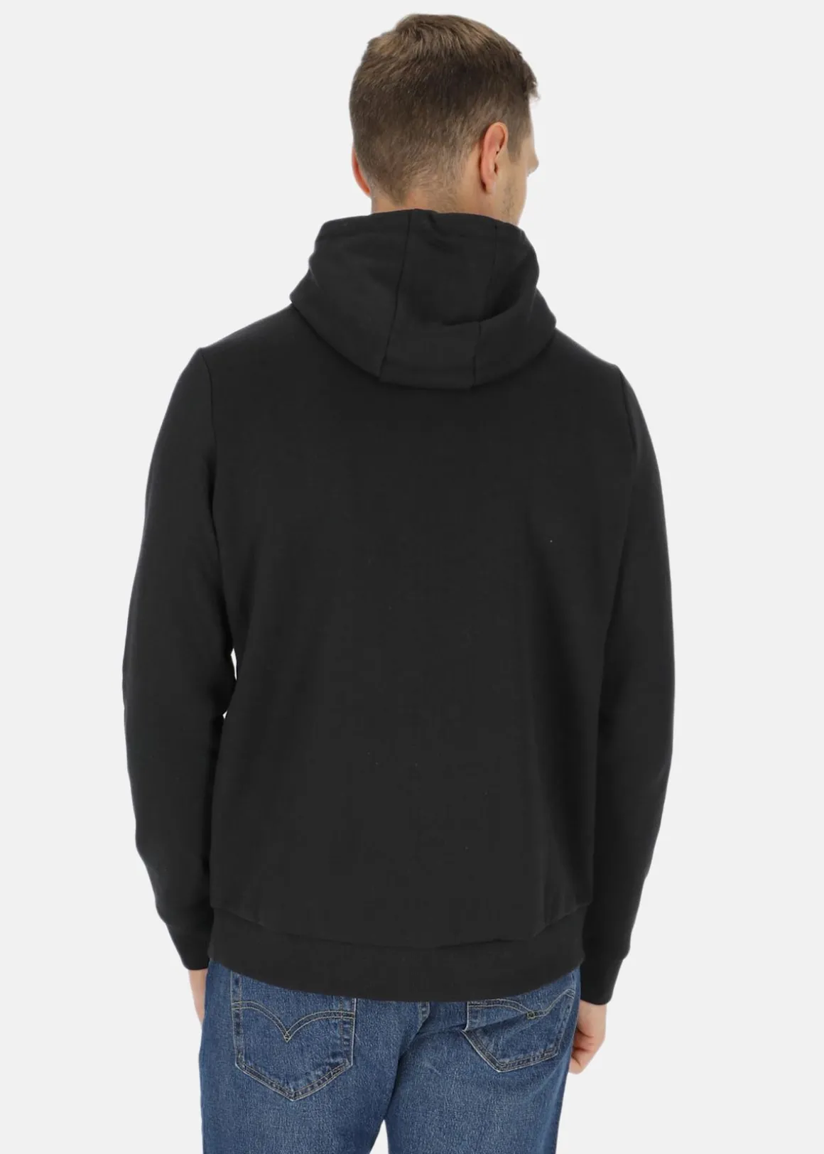 Mjuk tröja med justerbar huva och en stor ficka fram.
