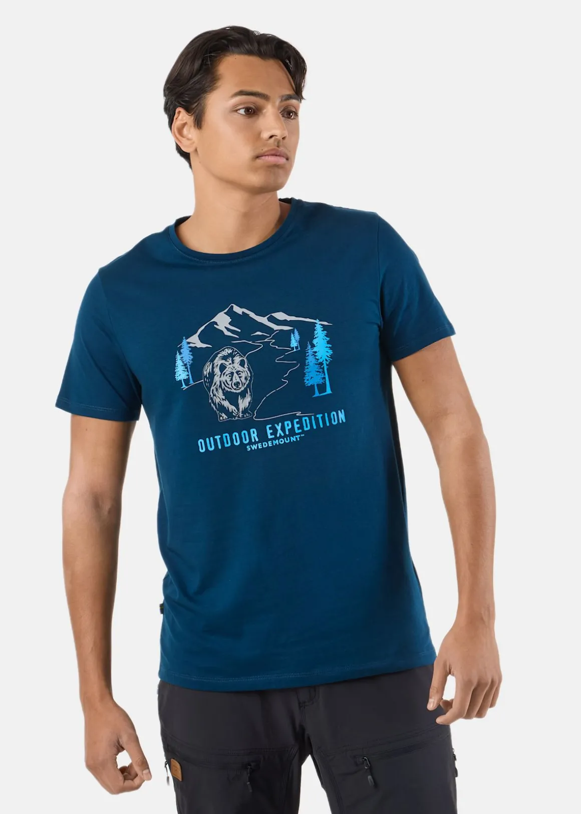 Forest Tee är en trendig och stilren T-shirt från Swedemount. Tillverkad i stretchigt och mjukt material med normal passform för en bekväm känsla. Med en rund halsringning och korta ärmar gör den perfekt för sommaren. Det unika trycket på framsidan ger T-shirten en personlig touch och sticker ut från mängden. Det perfekta komplementet till dina friluftskläder!