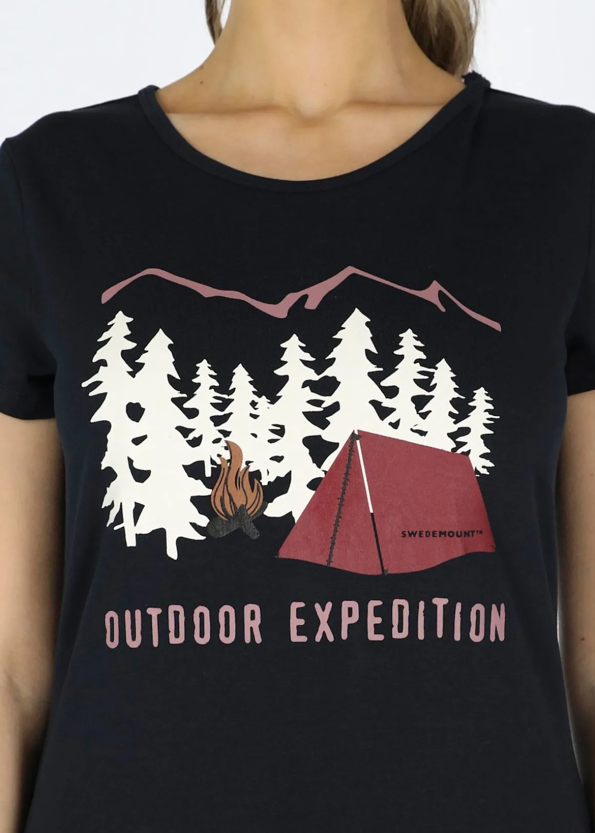 Forest Tee W är en trendig och stilren t-shirt från Swedemount. Tillverkad i stretchigt och mjukt material med normal passform för en bekväm känsla. Med en rund halsringning och korta ärmar gör den perfekt för sommaren. Det unika trycket på framsidan ger T-shirten en personlig touch och sticker ut från mängden. Det perfekta komplementet till dina friluftskläder!
