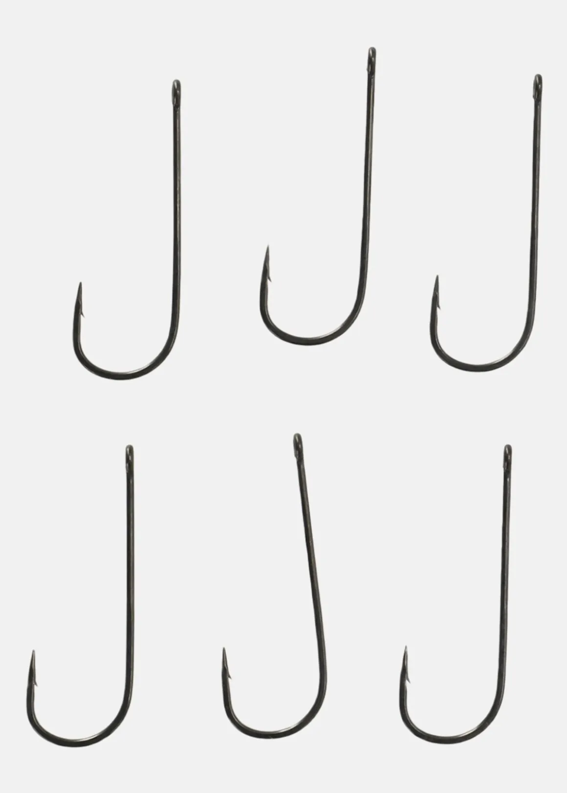 Vassa krokar med ett slitstarkt material och ögla för fiskelinan.