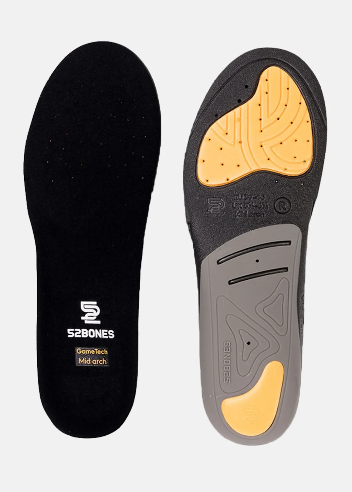 GameTech sportsulor från 52 Bones kombinerar utmärkt stötdämpning och optimalt stöd, tack vare EVA-skum med två densiteter och ett ytskikt av naturligt antibakteriell bambuviskos. Dessa sulor är speciellt utformade för att ge stabilitet och dämpning vid snabba rörelser i sporter som padel, tennis och basket. Med integrerat hålfotsstöd och en djup hälkopp, erbjuder GameTech sulorna både komfort och effektivt förebyggande av fot-, knä- och ledbesvär.