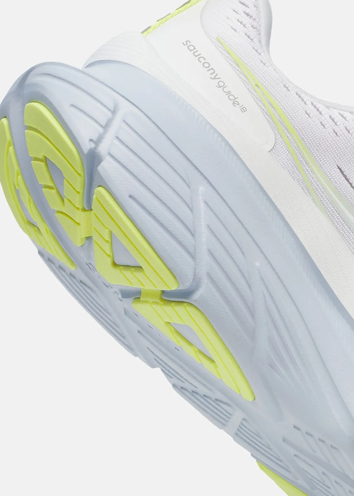 Guide 18 is a training shoe designed for comfort and protection. It combines soft PWRRUN foam with Center Path technology to keep the foot centered. The shoe offers a balanced experience with a stable sole base and high sidewall. The carbon rubber outsole provides excellent grip and low weight.
