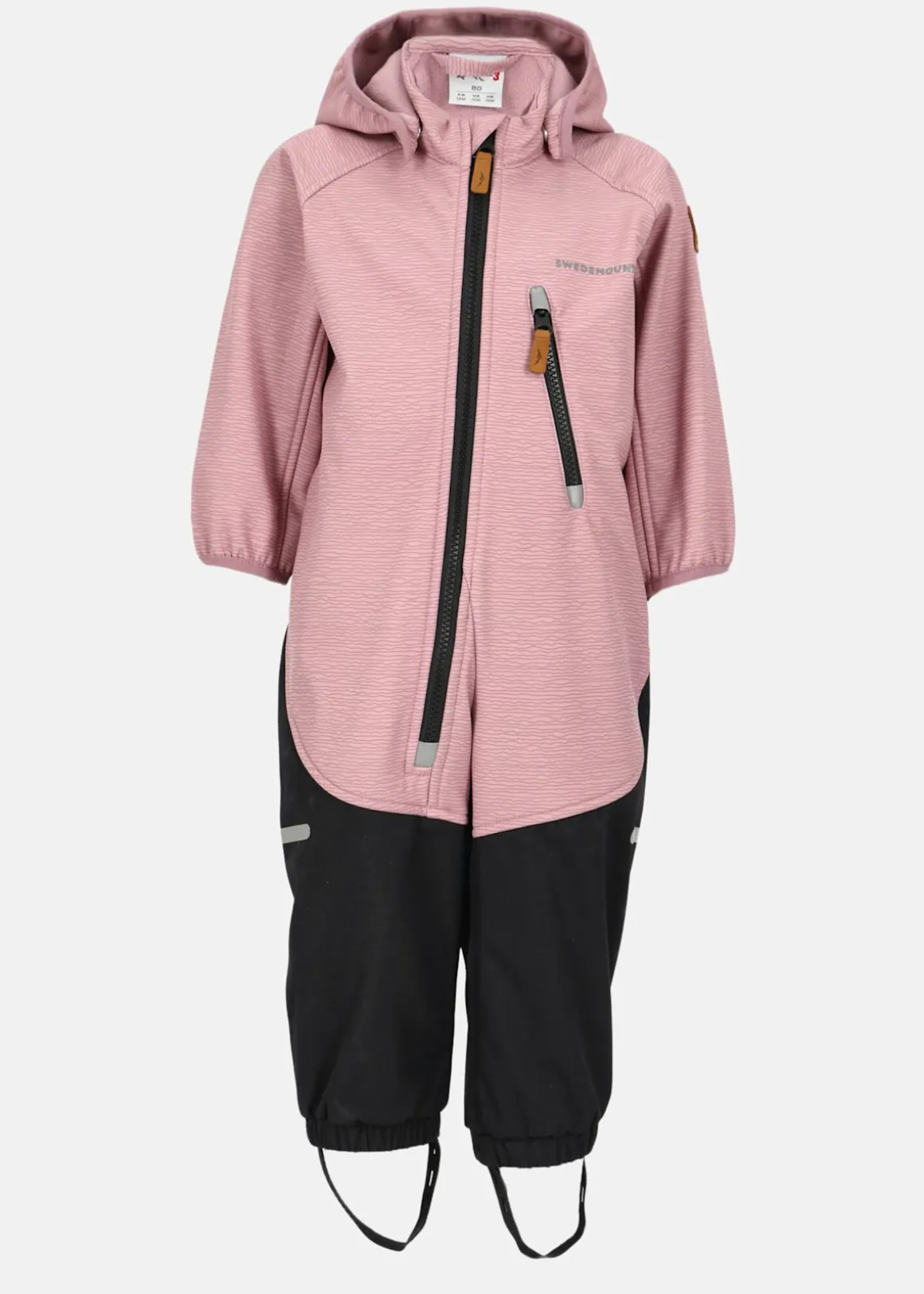 Overall i softshell. Vind- och vattenavvisande overall med en avtagbar huva och dragkedjestängning. Reflekterande detaljer för bättre synlighet och fothällor i silikon. Används för att hålla plagget på plats.