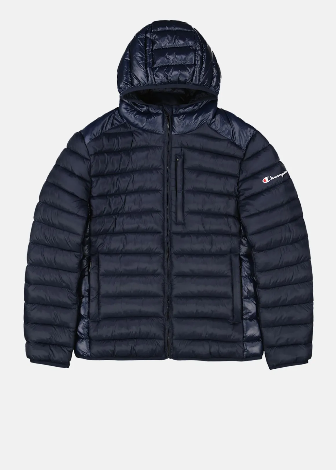 Champion Hooded Jacket erbjuder optimal komfort med sin vadderade och mjuka design, kompletterad med elastiska muddar och en fast huva. Praktiska sidofickor och en bröstficka med dragkedja gör den både funktionell och stilren. Med en diskret logga på ärmen och en hellång dragkedja med hakskydd, kombineras elegans och enkelhet i ett stilrent plagg.