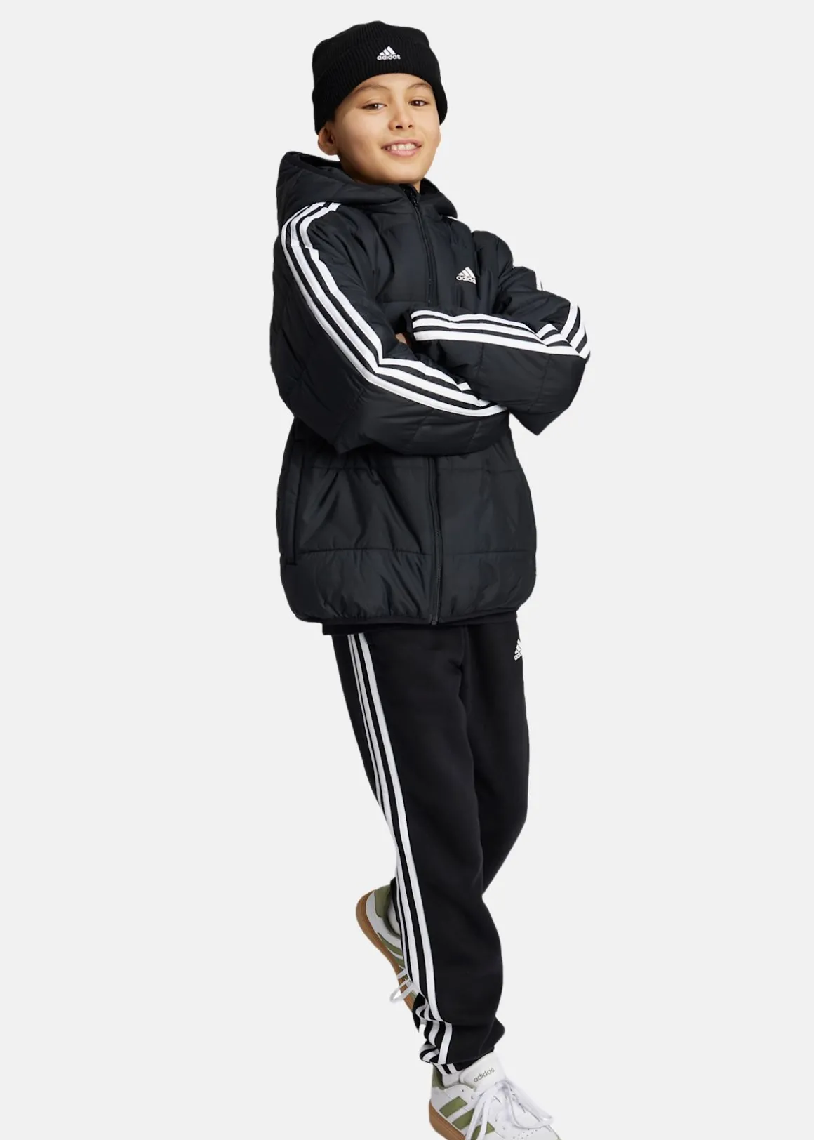 Denna lätta vadderade jacka, J ESS 3S PAD från Adidas, erbjuder optimal värme utan att kompromissa med rörelsefriheten. Med sidofickor, hellång dragkedja och elastiska band, är den både praktisk och bekväm. Reflexdetaljer ser till att du syns även när mörkret faller, perfekt för ungdomar som vill vara aktiva och stilfulla.