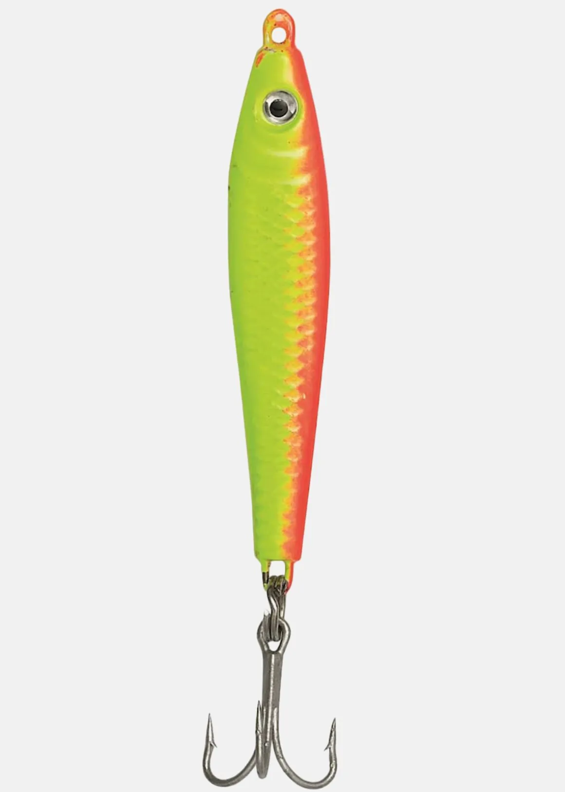 Ögla för fiskelinan och en vass trekrok undertill för ett lyckat fiske.