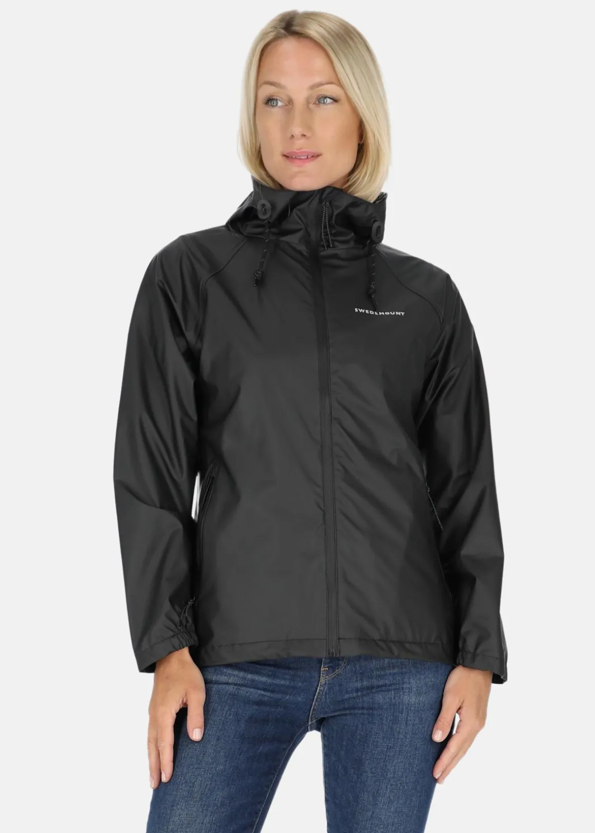Vind- och vattentät, kort regnjacka med en normal passform och slitstarkt material perfekt för regniga dagar. Tidlös design med justerbar huva och två handfickor.