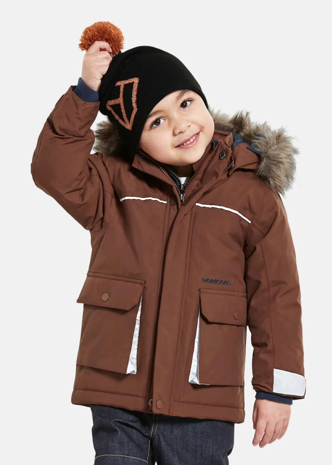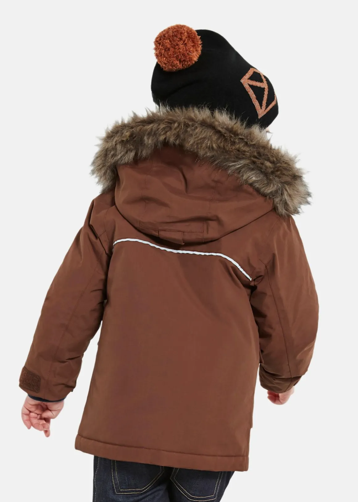 Vind- och vattenavvisande jacka. Vadderad parkas med tejpade sömmar och slitstarkt, vind- och vattentätt material perfekt för alla tillfällen. Tidlös design med avtagbar huva och fuskpäls. Två framfickor och justerbar storlek perfekt för juniorer.
