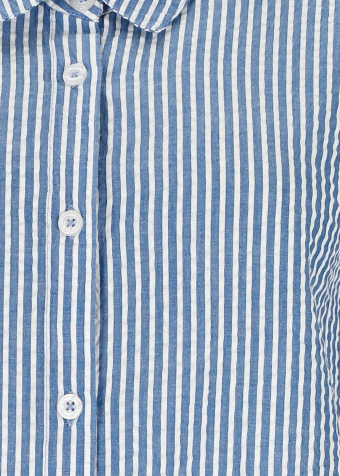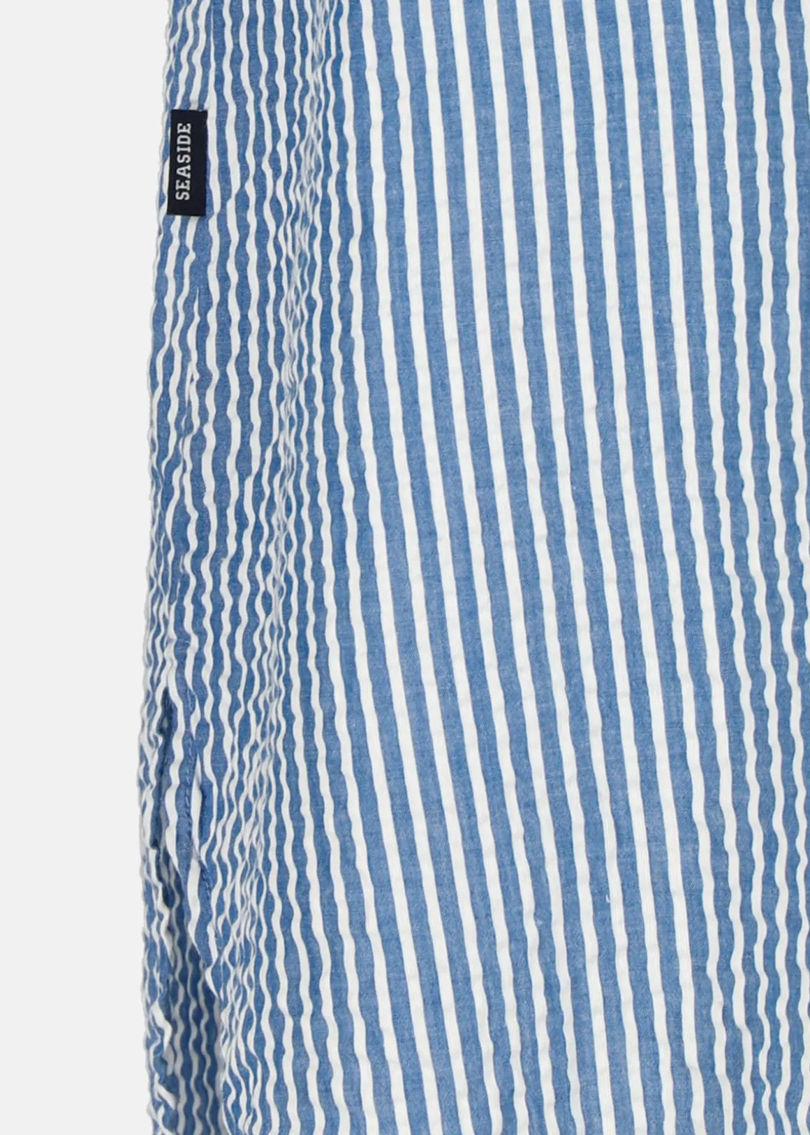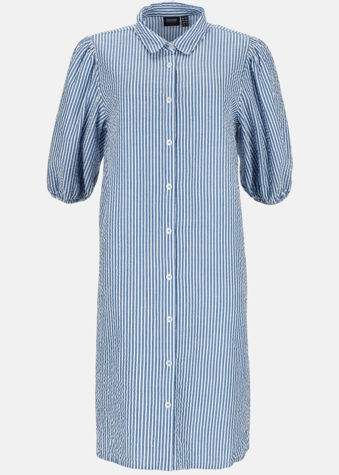 Denna skjortklänning från Seaside är tillverkad i 100% bomull och erbjuder en lätt och luftig känsla, perfekt för varma sommardagar. Med sin bäckebölja struktur ger den en stilren och avslappnad look. Klänningen har en klassisk krage och är genomknäppt framtill, vilket gör den mångsidig; bär den som en klänning eller öppen över en topp. Ärmarna avslutas med resår och den rundade nederkanten är något längre bak, vilket ger en smickrande silhuett.