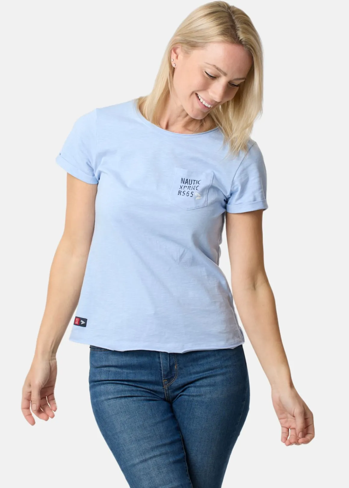 Det mjuka och sköna materialet ger en hög komfort medan den tidlösa designen med en bröstficka med logotryck ger en stilren look. T-shirten har en normal passform och korta, uppvikta ärmar som gör att den passar till alla tillfällen. Med den här t-shirten kommer du att känna dig snygg och bekväm samtidigt – ett måste i garderoben för alla mode- och båtälskare!