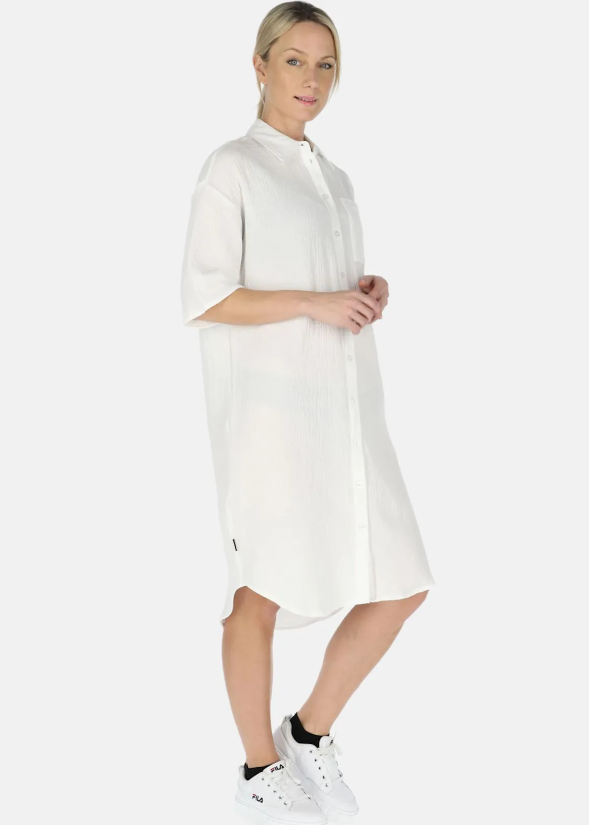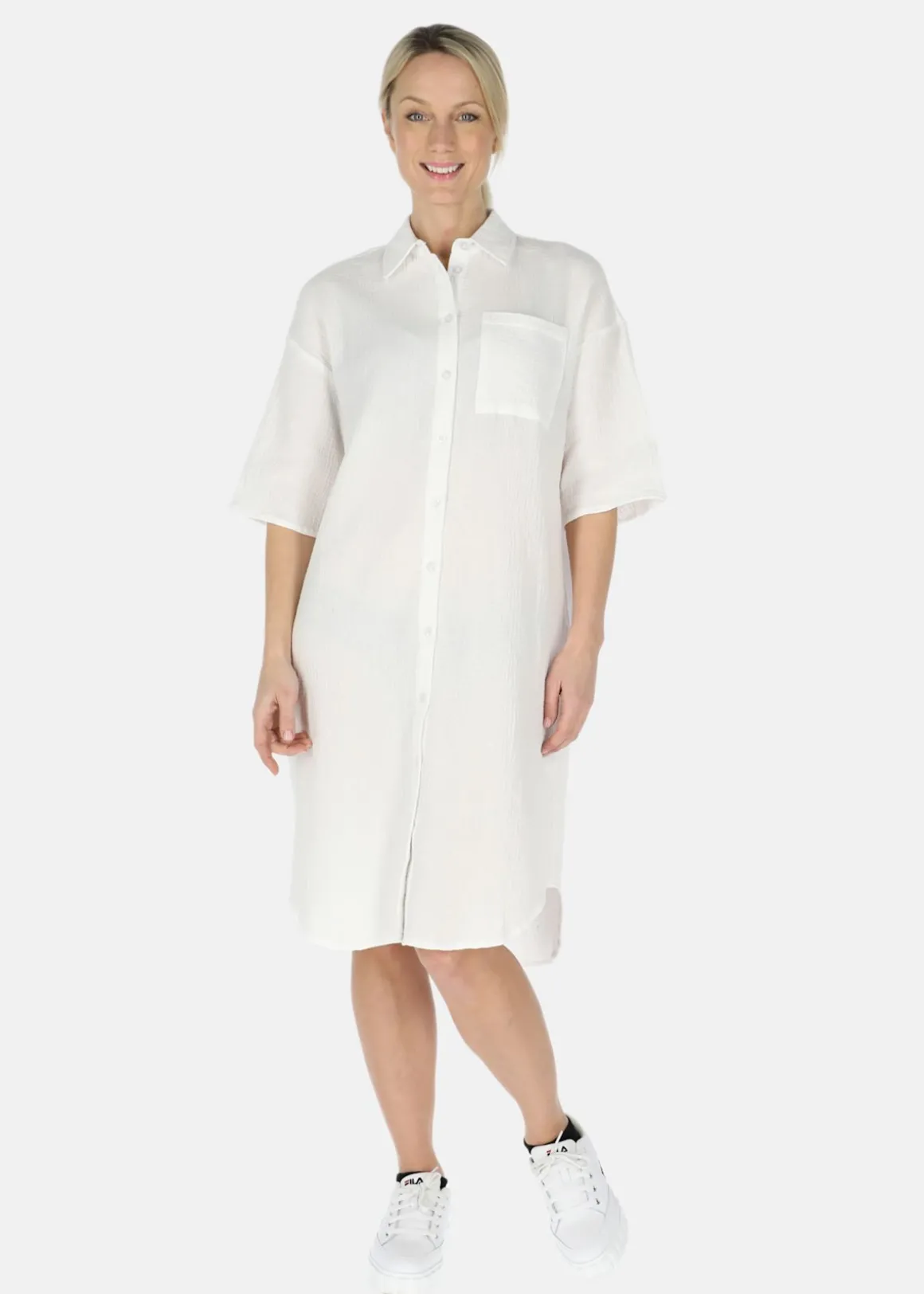 Maxime Oversized Shirt W från Seaside är den perfekta kombinationen av stil och komfort. Med en avslappnad passform och tillverkad av lättviktigt material är den idealisk för alla avslappnade tillfällen. Den v-halsade skärningen och den klassiska kragen ger skjortan en fin touch. Den genomgående stängningen med knappar garanterar en säker och justerbar passform. Passar utmärkt för varmare dagar i sommar!