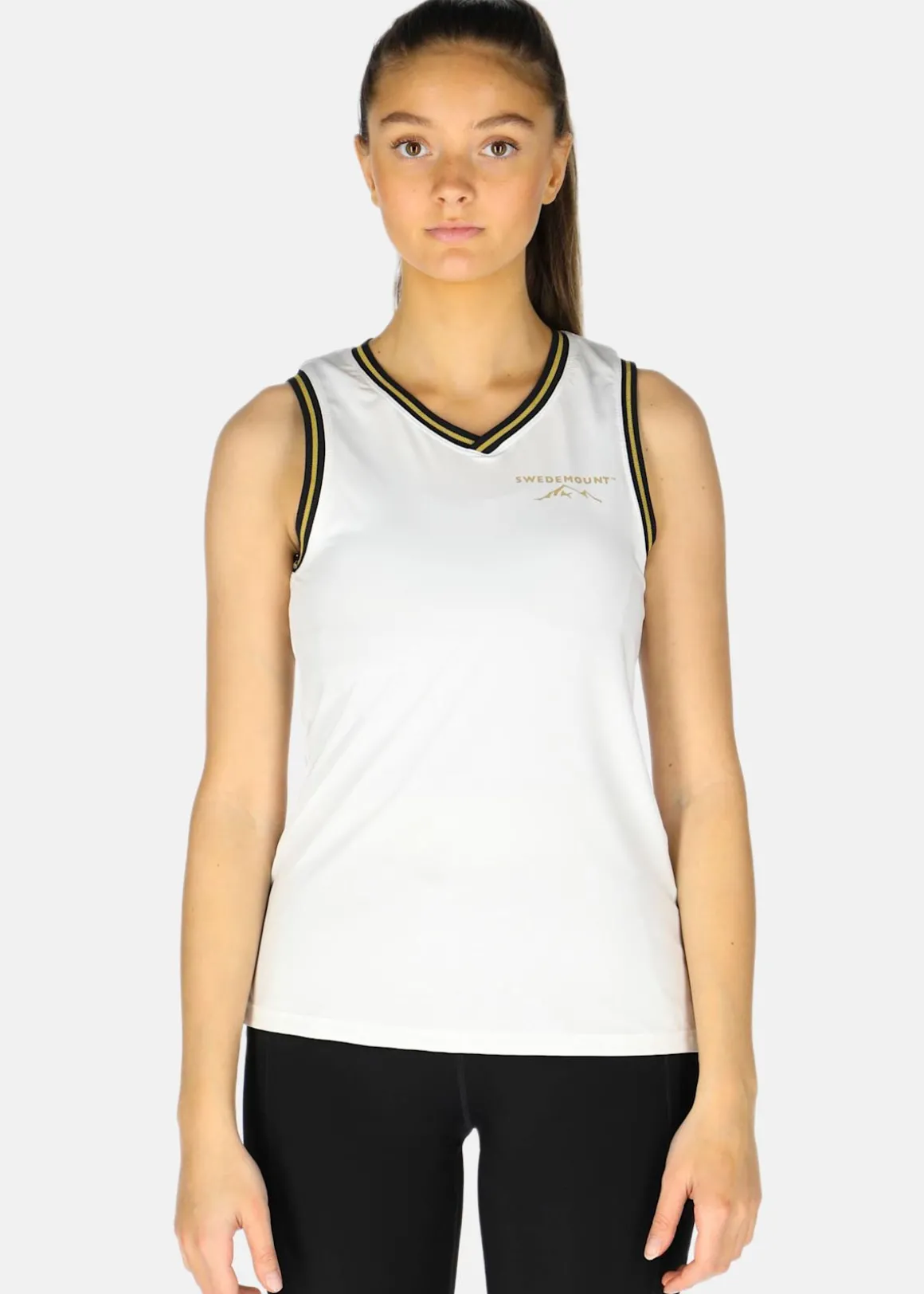 Skönt linne med ett logotryck på bröstet och v-ringning fram. Tidlös design och normal passform.
