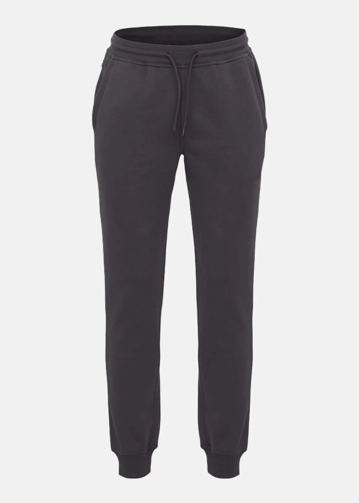 Byxorna är tillverkade i en blandning av bomull och återvunnen polyester med ett mjukt, stabiliserat tyg som tål frekvent tvätt. Materialet har anti-pilling-egenskaper som bevarar ytan över tid. Midjan har elastisk 2×2-ribb med dubbelsömmar och justerbart dragsnöre för en bekväm passform. Två framfickor och en dold ficka med dragkedja i sidosömmen ger praktisk förvaring.