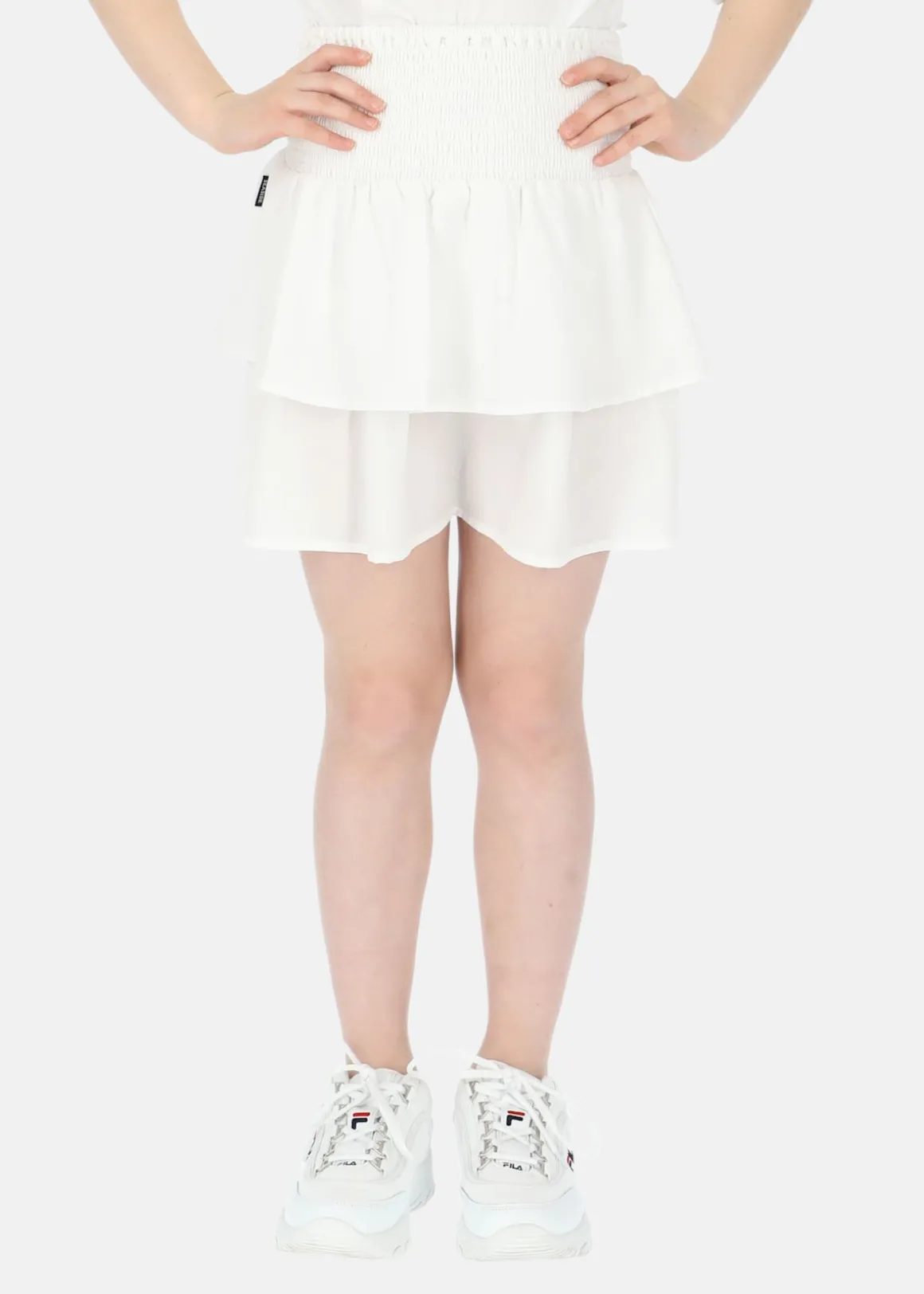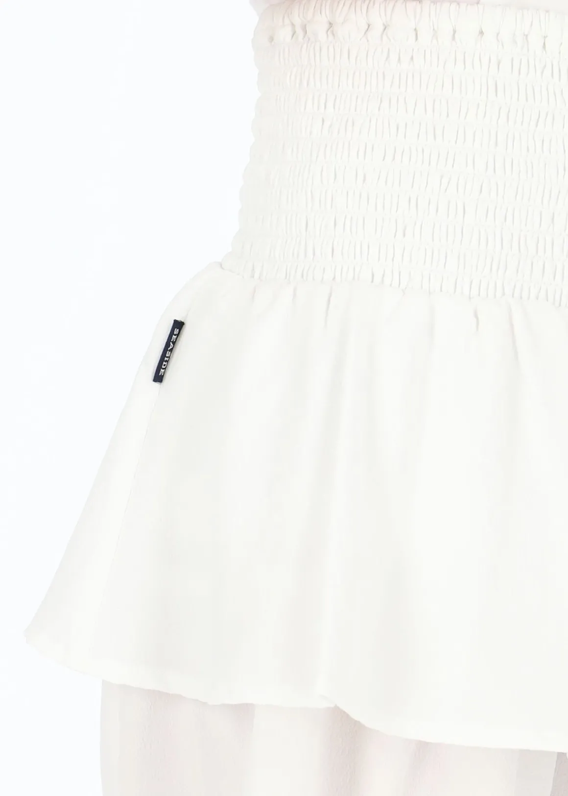 Kort kjol från Seaside i ett tunt, luftigt tyg med stretchig midja. Volangen nedtill gör att den får ett fint fall, perfekt för alla tillfällen!