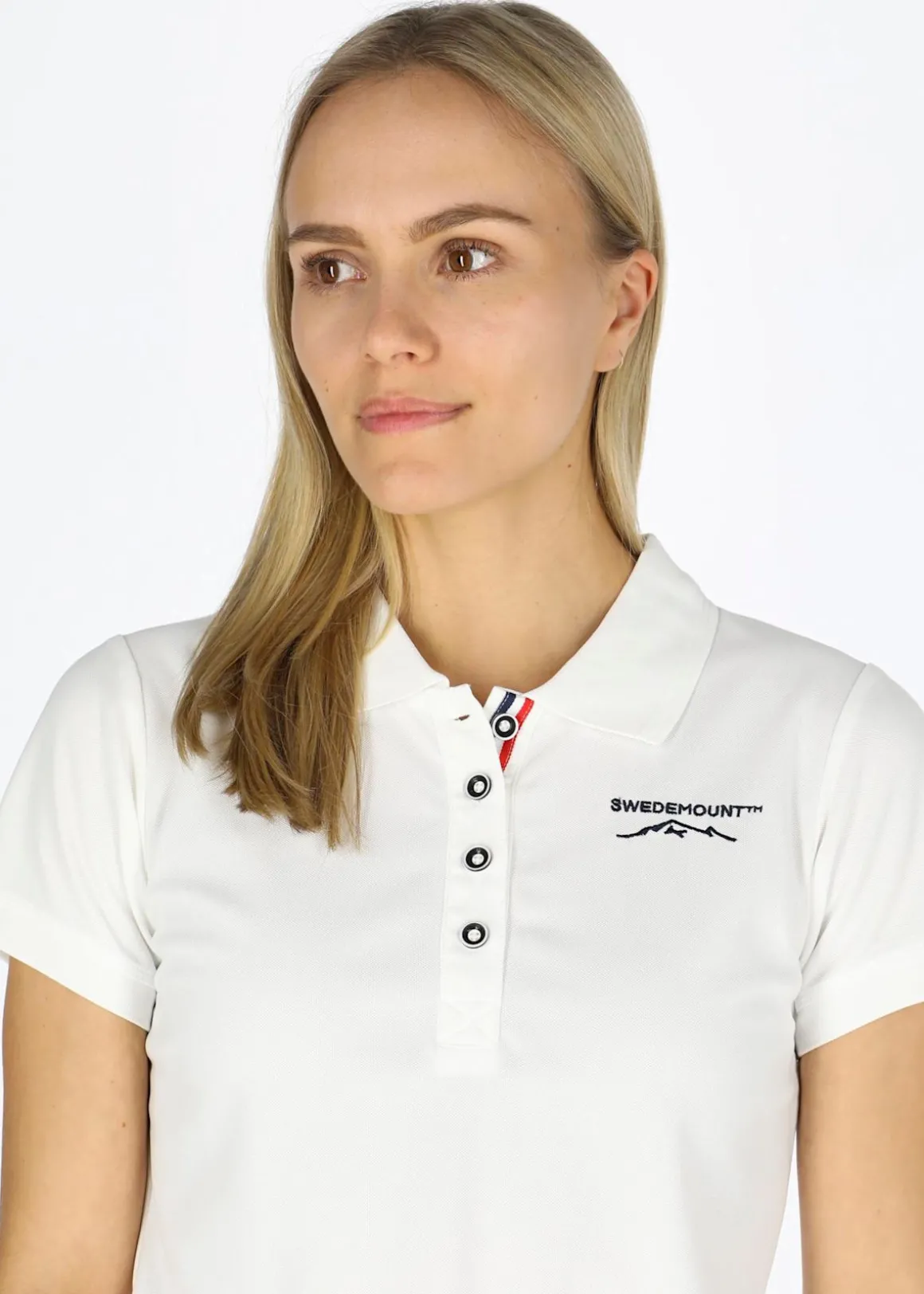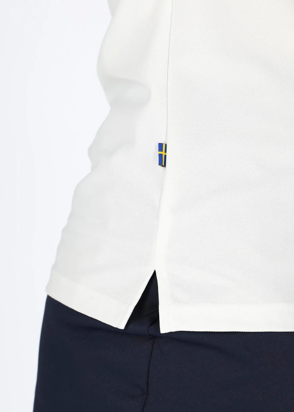 Formsydd pikétröja från Swedemount. Pikétröjan har ett snabbtorkande material med en god andningsförmåga och en knäppt krage med en broderad detalj framtill.