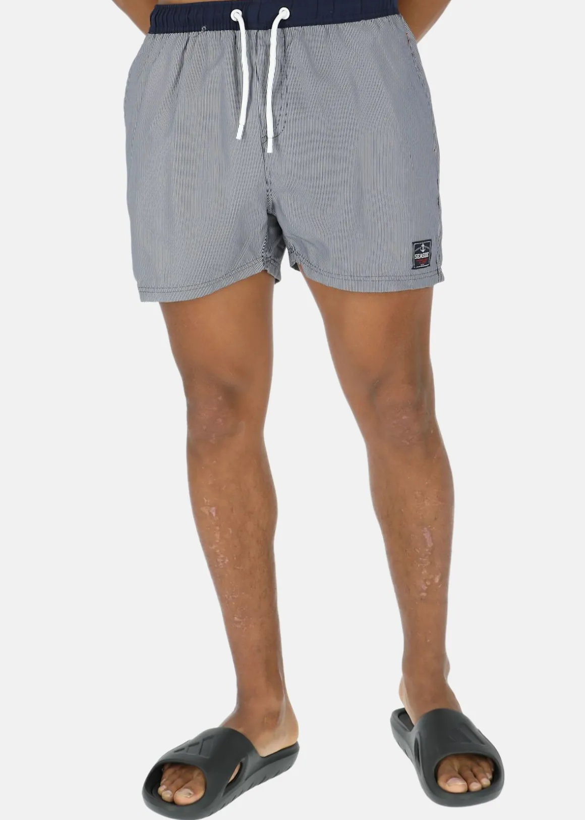 Pacific Beachshorts från Seaside är tillverkade i ett snabbtorkande och lätt material med normal passform. Tack vare den justerbara och stretchiga midjan så är det enkelt att anpassa passformen efter dina önskemål. Praktisk bakficka med kardborrestängning och innerbyxor i meshtyg. Dessa badbyxorna är perfekta för en dag vid stranden eller poolen.