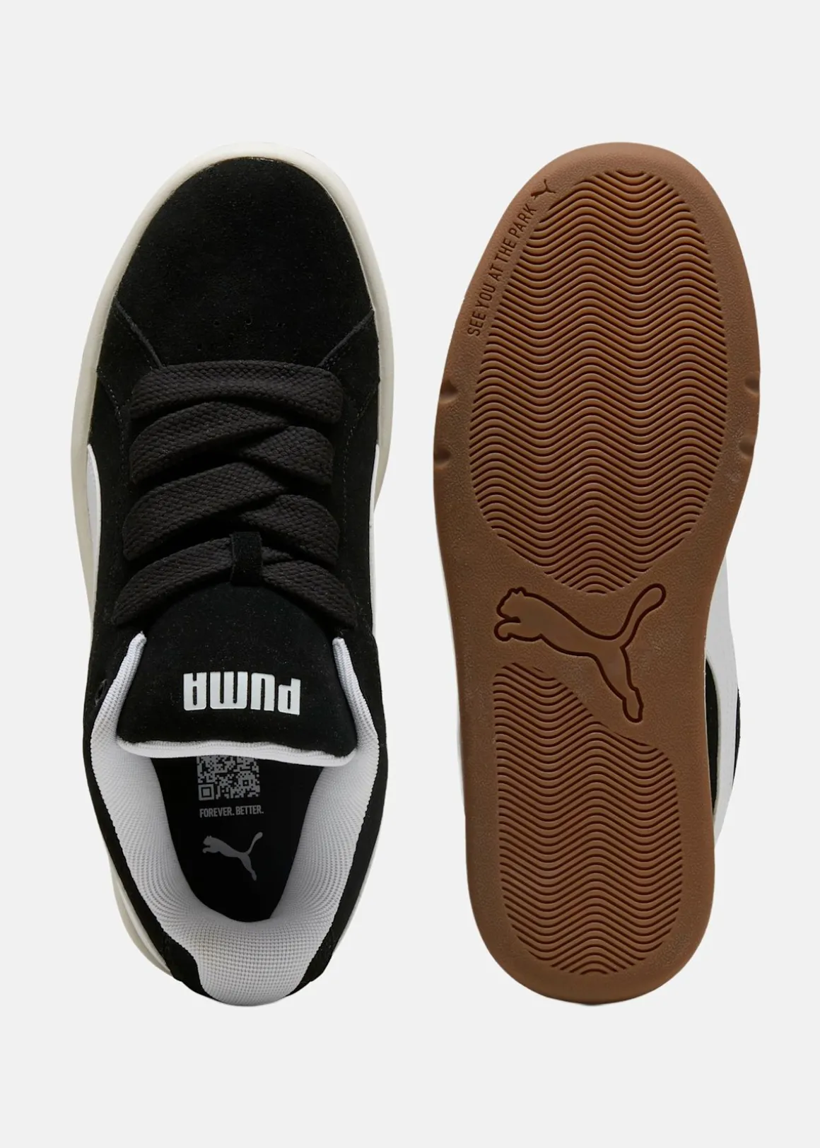 Ovandel i mocka med syntetdetaljer ger en klassisk känsla med modern touch. Den extra mjuka SOFTFOAM+ innersulan ger skön dämpning hela dagen, perfekt för både stadspromenader och skoldagar. Yttersulan i gummi ger bra grepp, och designen lyfts av PUMAs klassiska Formstrip på sidan.