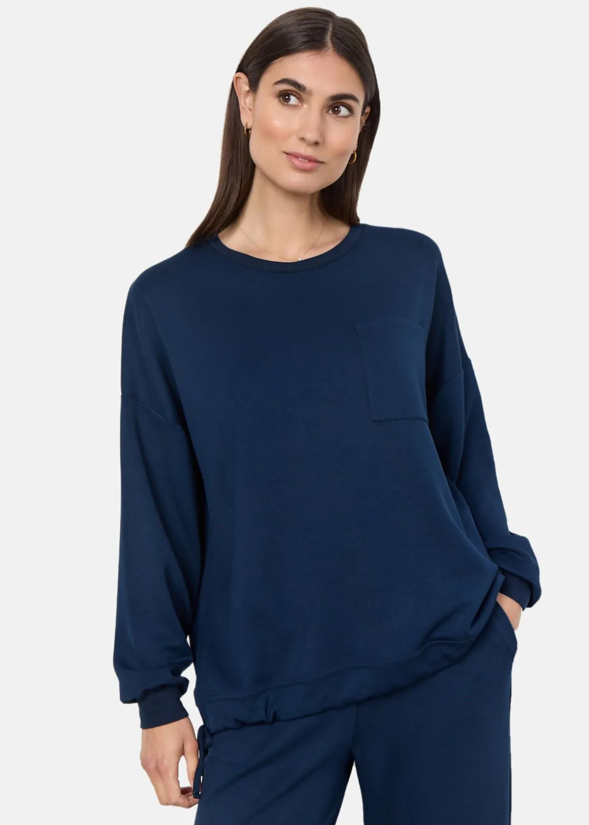 SC-BANU 32 tröja från Soya Concept. Mysig tröja med en justerbar dragsko nedtill. Trendig design med en öppen bröstficka. Mjukt material med en normal passform. .