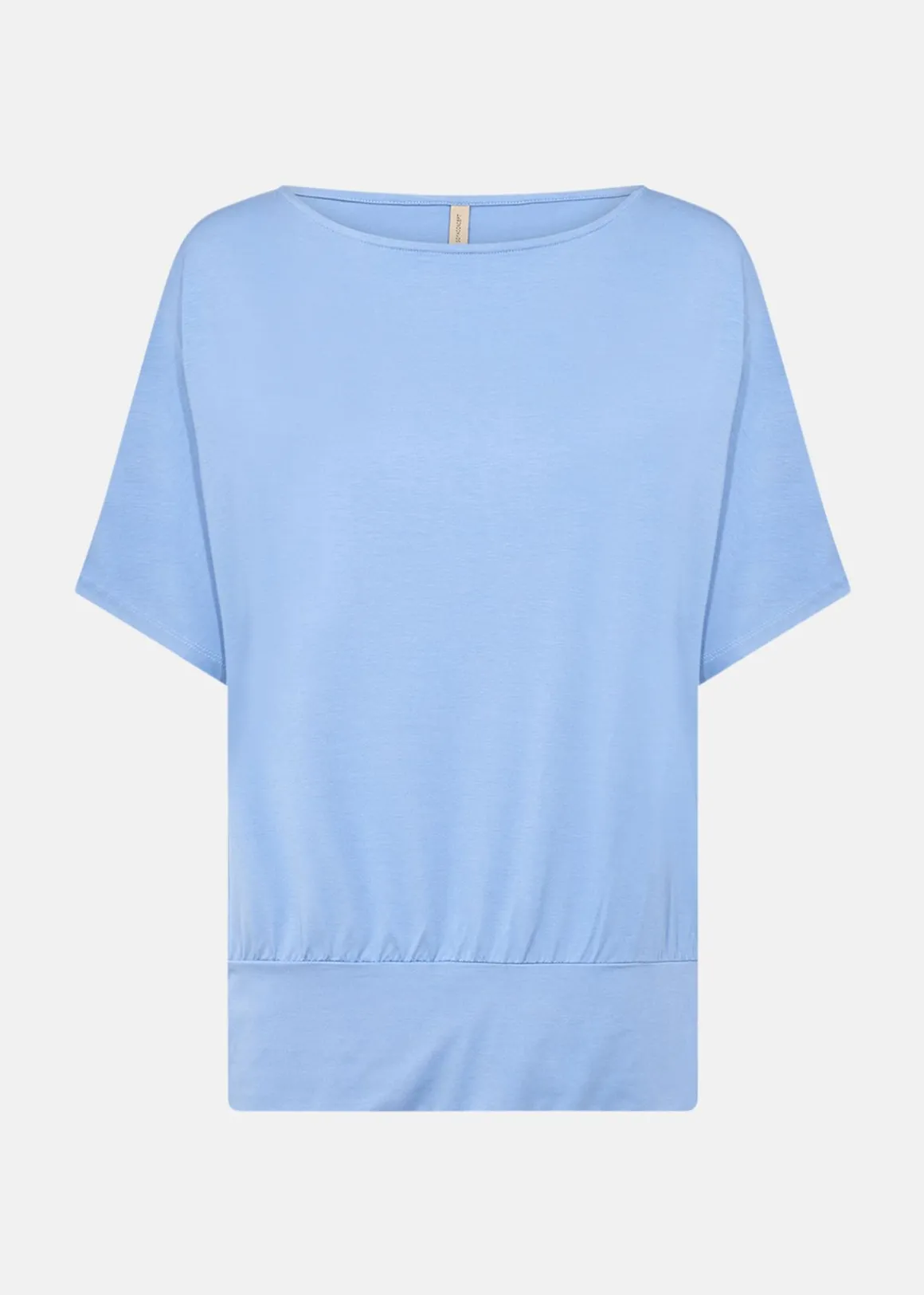 Denna topp erbjuder en stilren och bekväm design med sin avslappnade passform och vida ärmar. Det mjuka materialet av Lyocell och Elastan ger en behaglig känsla mot huden, medan bandet i nederkanten skapar en smickrande drapering. Perfekt att kombinera med både byxor och kjolar för en elegant och mångsidig stil.