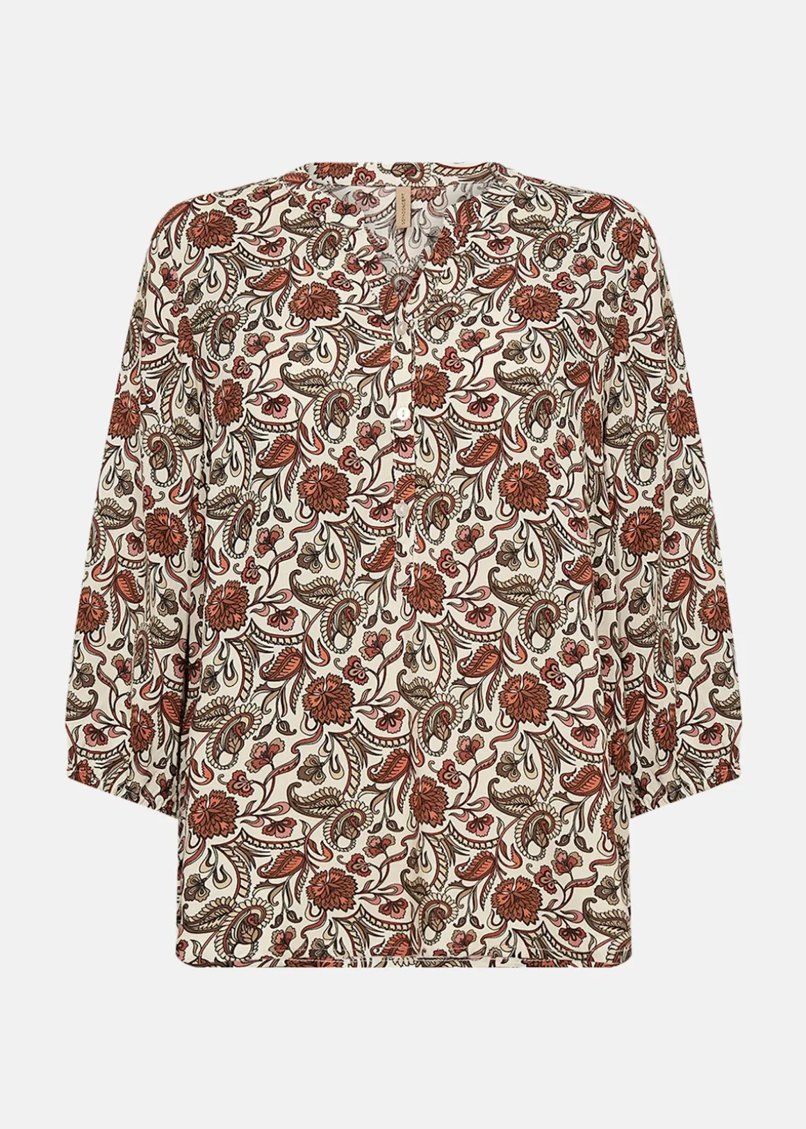 SC-SAMEA 2 Blouse är en elegant och mångsidig blus tillverkad av hållbar LENZING ECOVERO viskos. Dess blommönster och långa ärmar ger en feminin touch, medan V-ringningen med knappar erbjuder en klassisk stil. Perfekt att kombinera med jeans för en avslappnad look eller med en kjol för en mer sofistikerad framtoning.