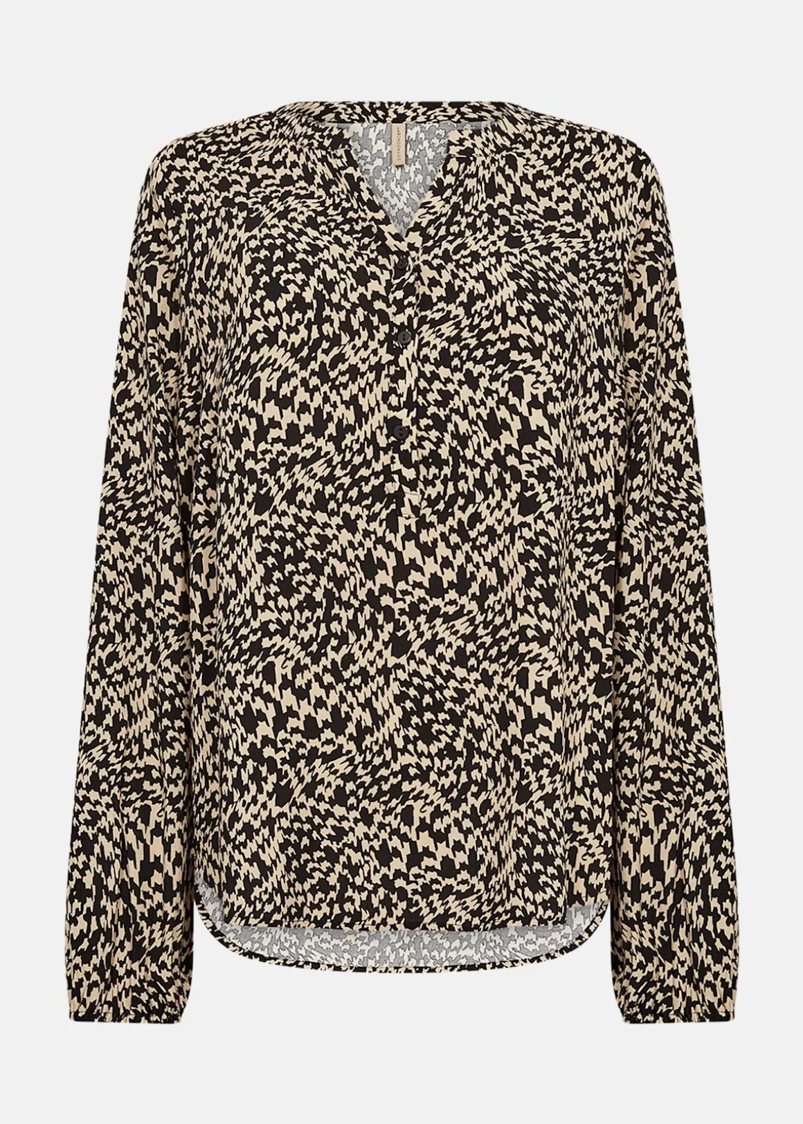 SC-VAN 1 Blus är tillverkad av hållbar viskos och erbjuder en stilren design med en V-ringad hals och knäppning framtill. De långa ärmarna med elastiska muddar ger en bekväm passform, medan det abstrakta trycket tillför en modern touch. Perfekt att kombinera med både skräddarsydda byxor och denim för en mångsidig stil.