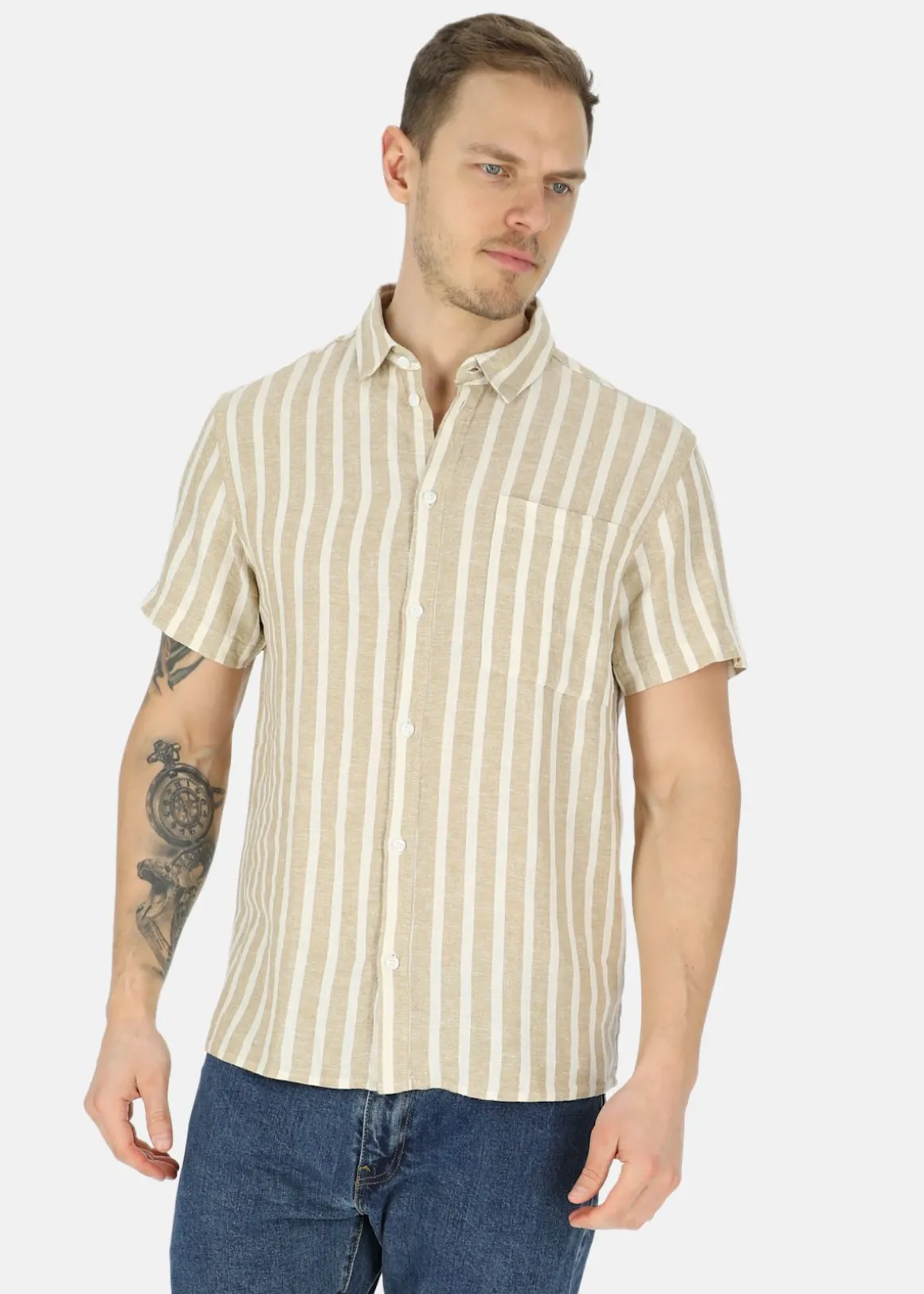 Kortärmad skjorta från Solid tillverkad i ett bekvämt, lätt material för att passa till de varmaste dagarna. Med genomgående knappstängningen, korta ärmarna och bröstfickan gör den till ett mångsidigt och elegant val för alla tillfällen. Passar utmärkt till både vardags och fest!