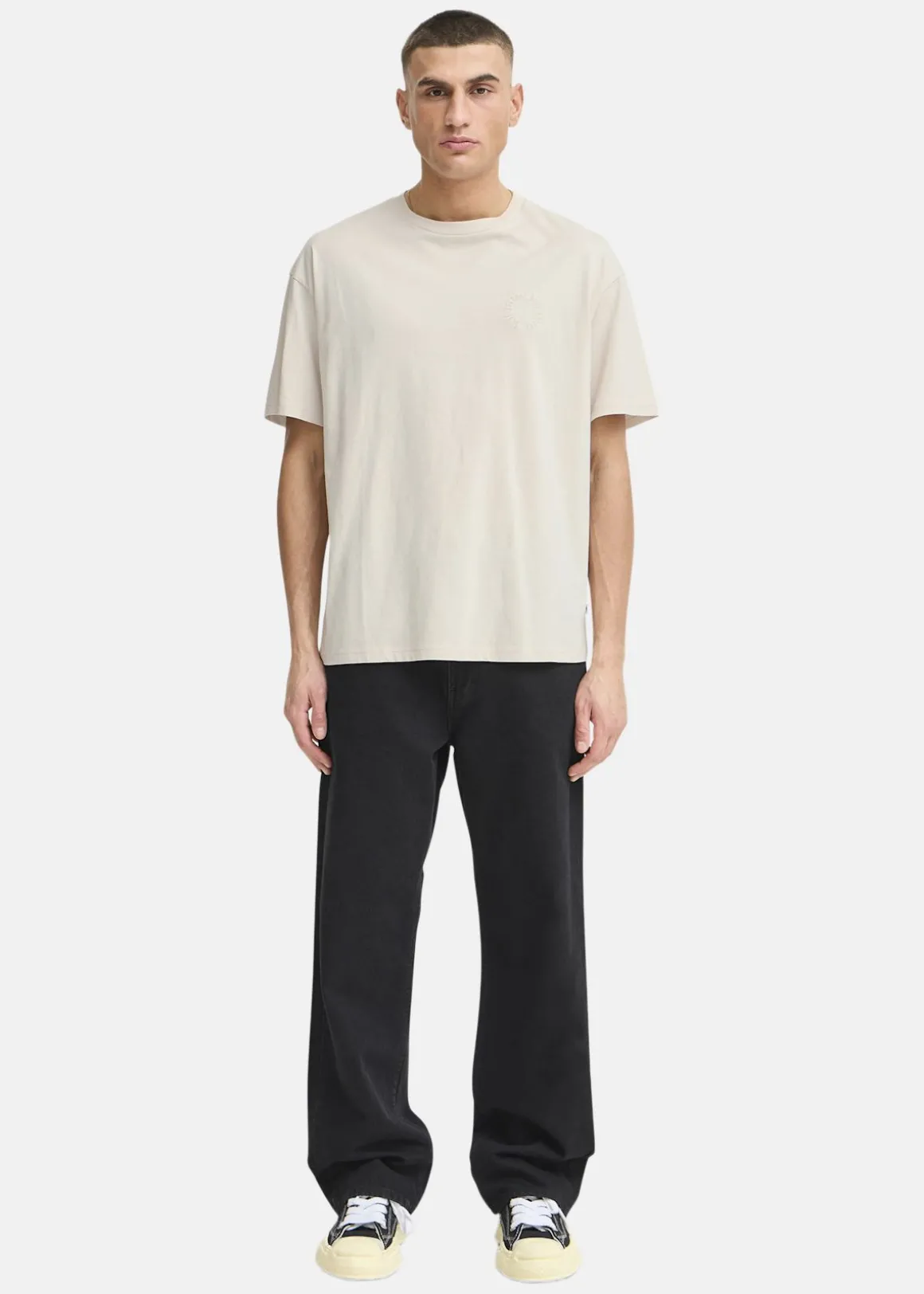 Denna t-shirt för män erbjuder en bekväm passform med sitt mjuka bomullsmaterial. Den rundade halsringningen och de korta ärmarna ger en klassisk look, medan det stora trycket på baksidan tillför en unik stil. Perfekt för vardagsbruk.