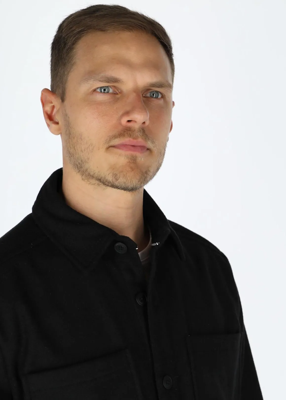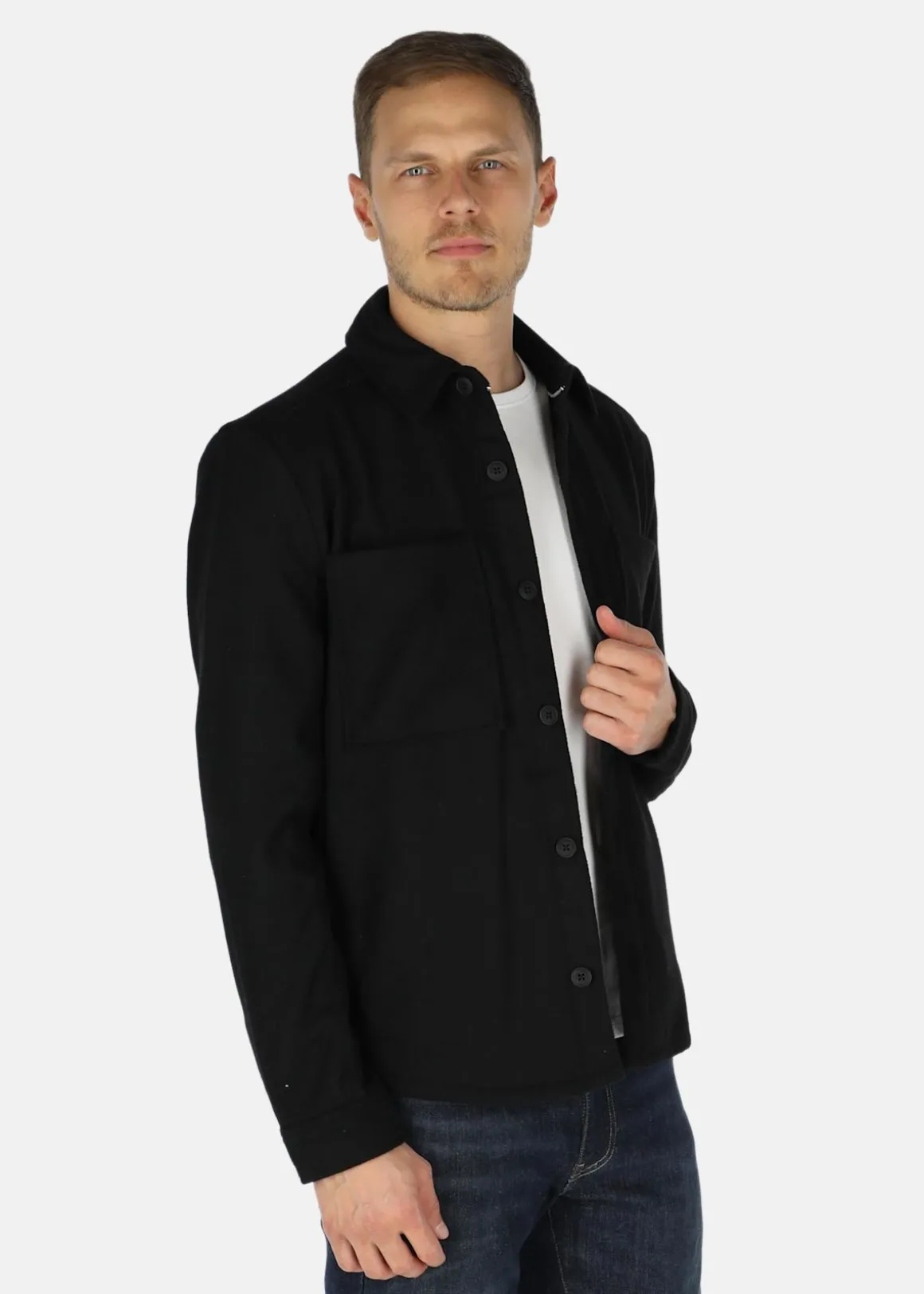 Skjortlik jacka med en normal passform. Trendig design med knappstängning. Skönt material och två öppna bröstfickor.