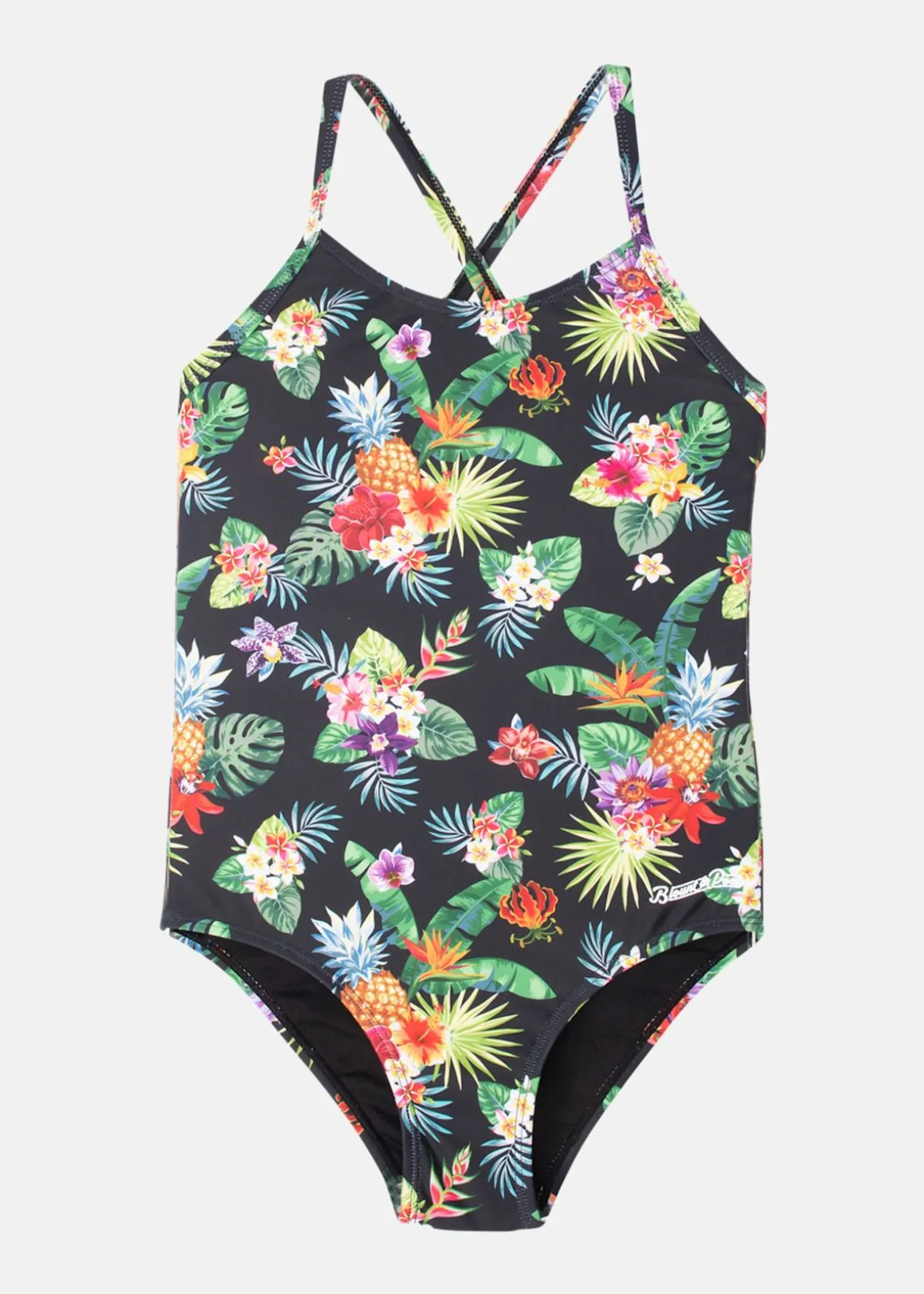 Färgglad baddräkt från Blount and Pool. Baddräkten har korsade axelband.