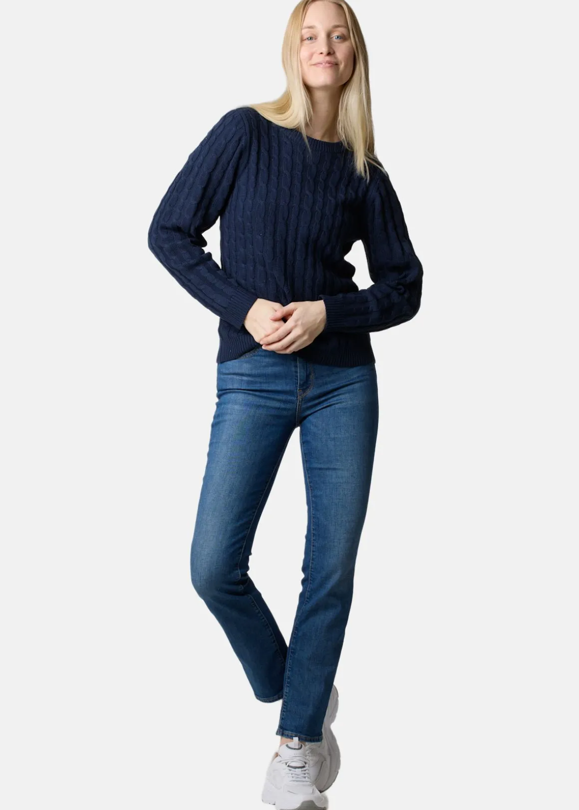 Seaside presenterar Tampa Cable Knit W, en elegant kabelstickad tröja som kombinerar stil och komfort. Dess mjuka, stretchiga material och figurnära passform gör den till ett perfekt val för en sofistikerad vardagslook. Med sin klassiska runda halsringning är den här tröjan ett måste i varje garderob.