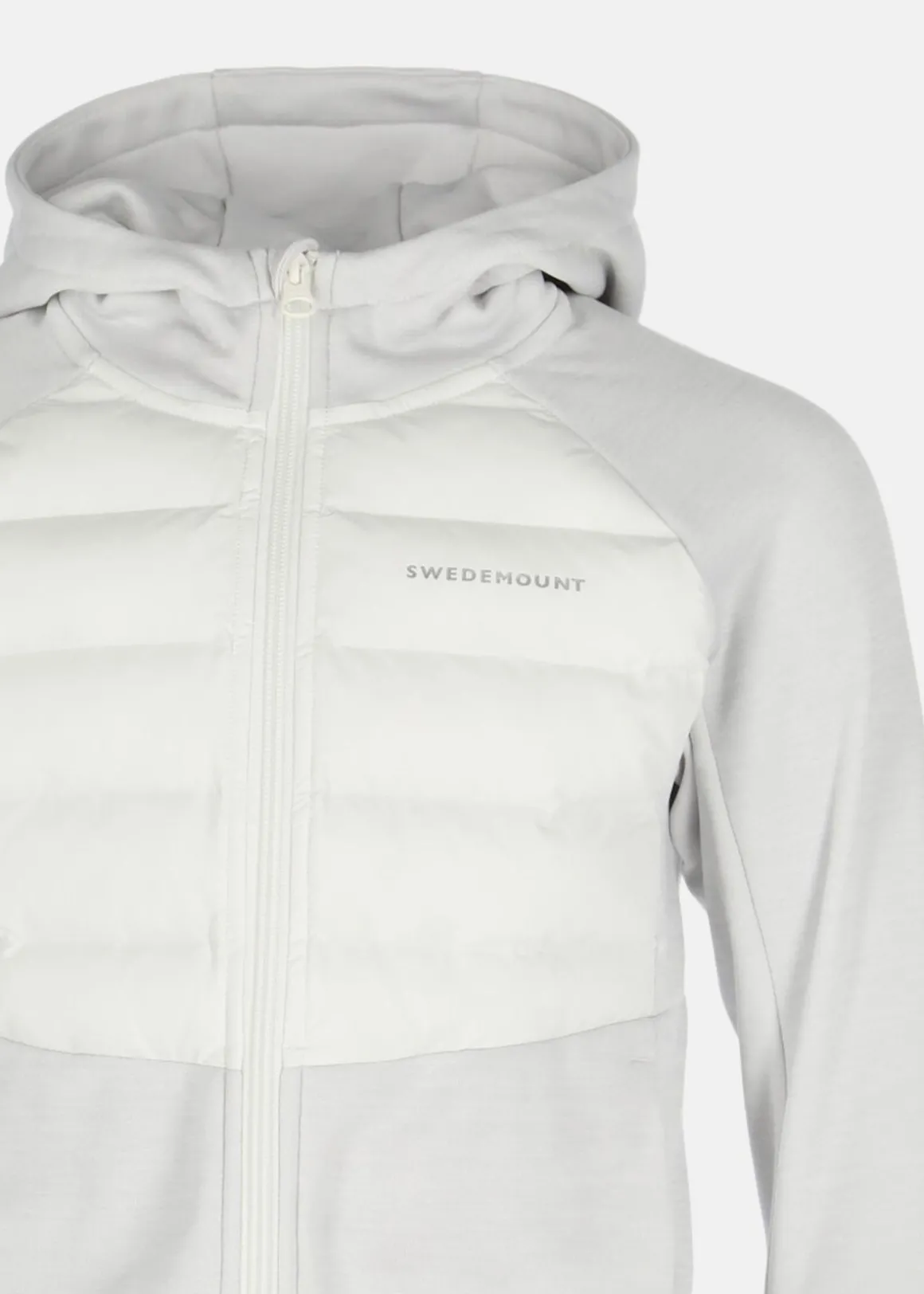 En hybridjacka från Swedemount i ett värmande material som passar både som ett ytterlager men även som lager två under en skaljacka i kallare temperaturer. Den är designad i ett tvådelat material där ena delen är ett vadderat och vattenavvisande parti över bröstet och resterande material är mjukt och har en borstad insida i fleece. Materialet har också egenskaper som god andningsförmåga och fukttransport för att du ska kunna träna utan hinder och obehag. Jackan är försedd med en luva som kan justeras i vidd med dragskor, två sidofickor och reflekterande logotryck på bröstet och i bak. Den fina designen på jackan gör att den går att använda både till vardags och under träning.