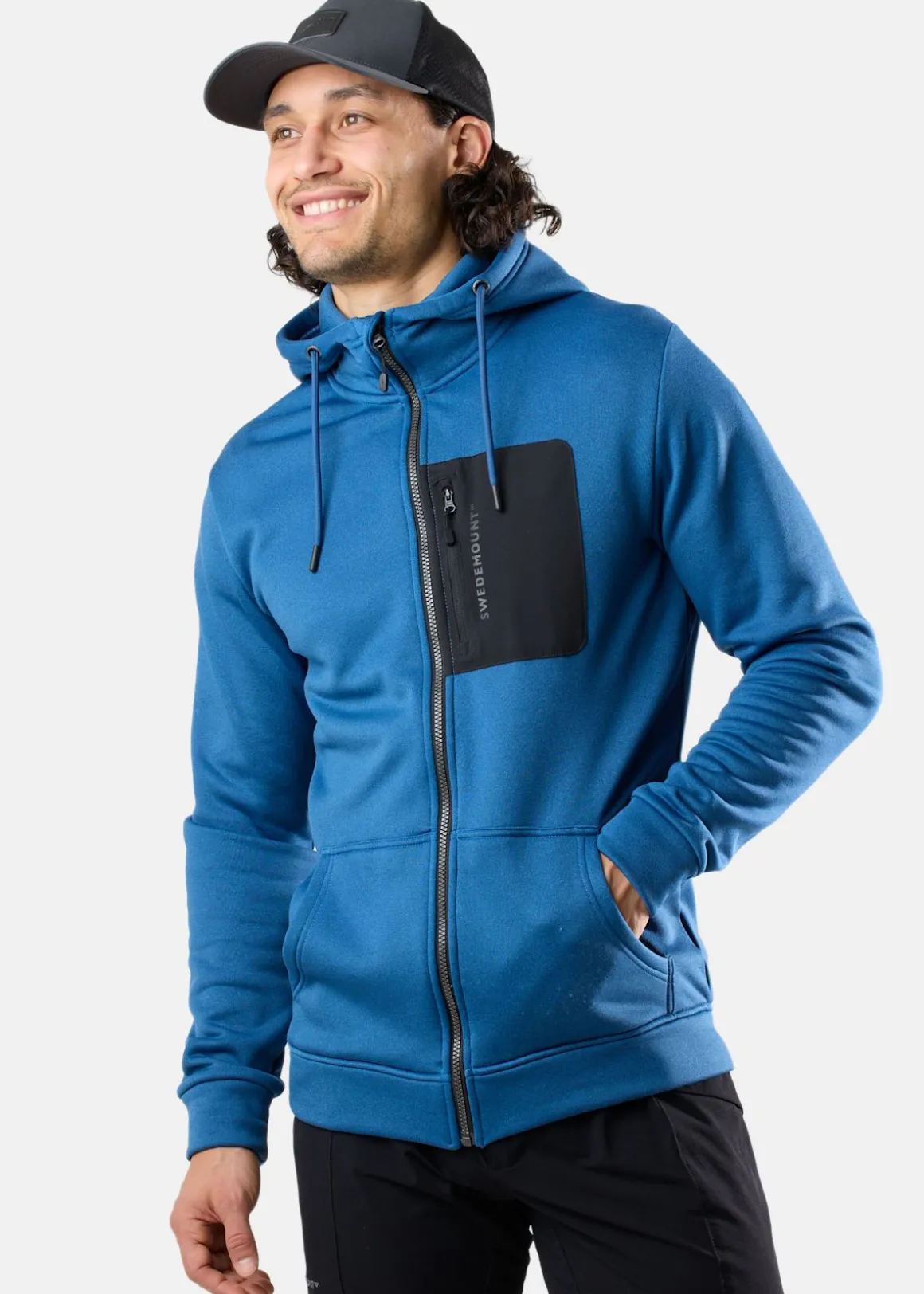 Huvtröjan Trondheim Stretch Full Zip Hood från Swedemount har normala passform och mjukt, stretchigt material som ger optimal komfort och rörelsefrihet. Insidan av borstad microfleece skapar en mysig känsla med värmande egenskaper. Tröjan har även god andningsförmåga för att hålla dig fräsch under hela dagen. Den justerbara huvan och den höga kragen med hakskydd ger extra skydd mot väder och vind. Tack vare öppna handfickor och en bröstficka med dragkedja får du praktiska förvaringsmöjligheter som rymmer det viktigaste. Muddar vid ärmsluten och nedtill ger en perfekt passform och extra komfort. Passar perfekt till både vandring, träning och till vardags!