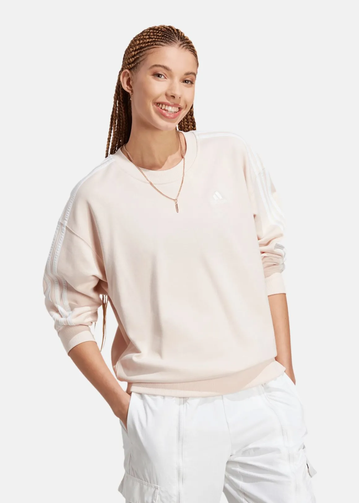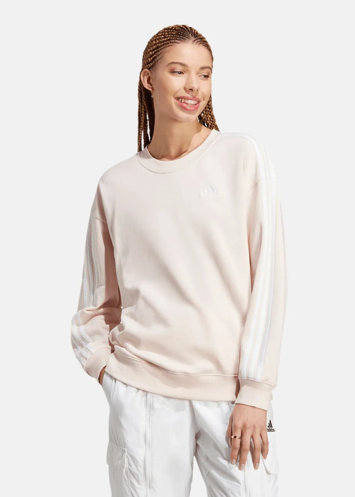 Det mjuka materialet och den avslappnade passformen gör den till det perfekta valet för att slappna av hemma eller springa ärenden. Den rundade halsringningen och de ribbade muddarna ger en klassisk och bekväm passform, medan logotrycket på bröstet och revärerna längs sidorna ger en touch av sportig stil. Vare sig du ska till gymmet eller helt enkelt letar efter en bekväm och snygg tröja att bära på stan är den här tröjan det perfekta valet.