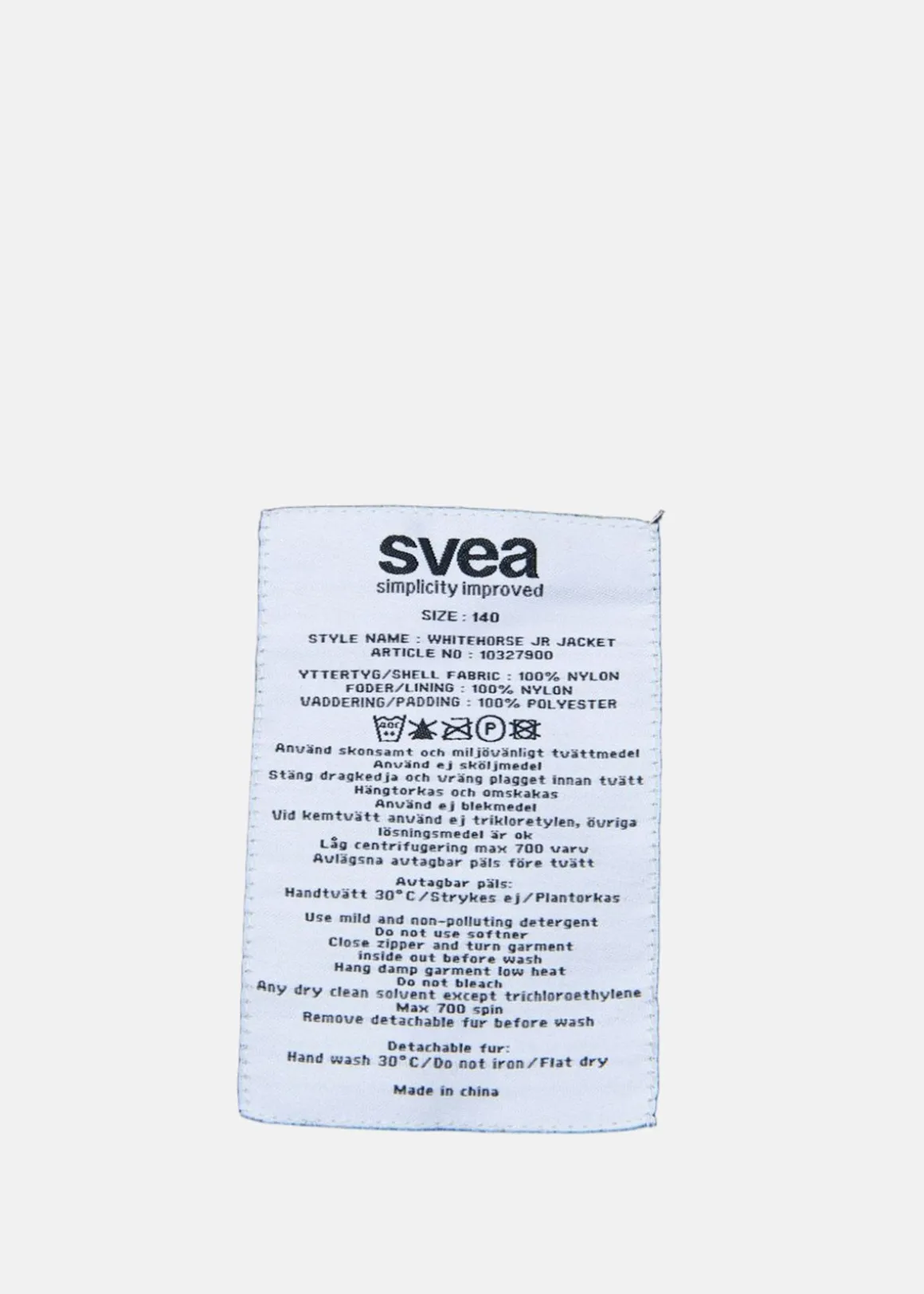 Yttertyg: 100% nylon. Vaddering: 100% polyester.