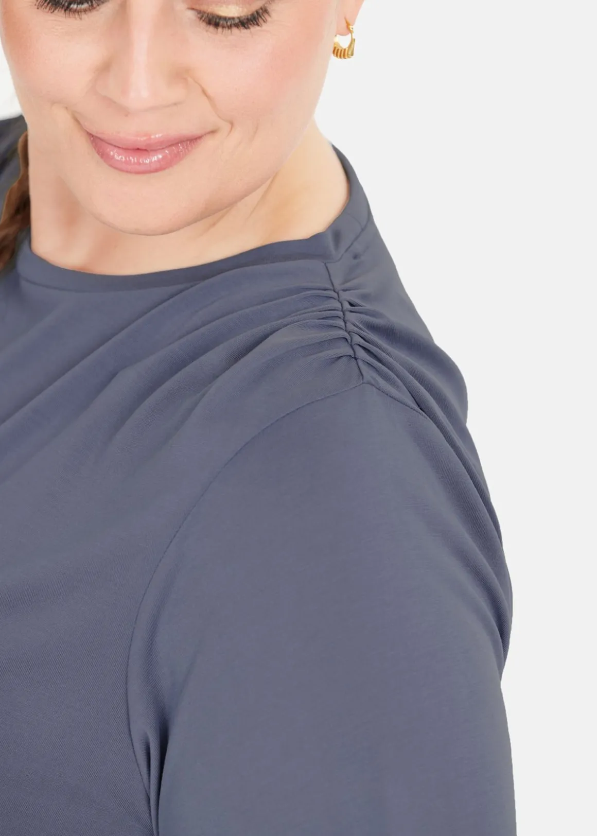 - Smickrande rynkad axeldetalj