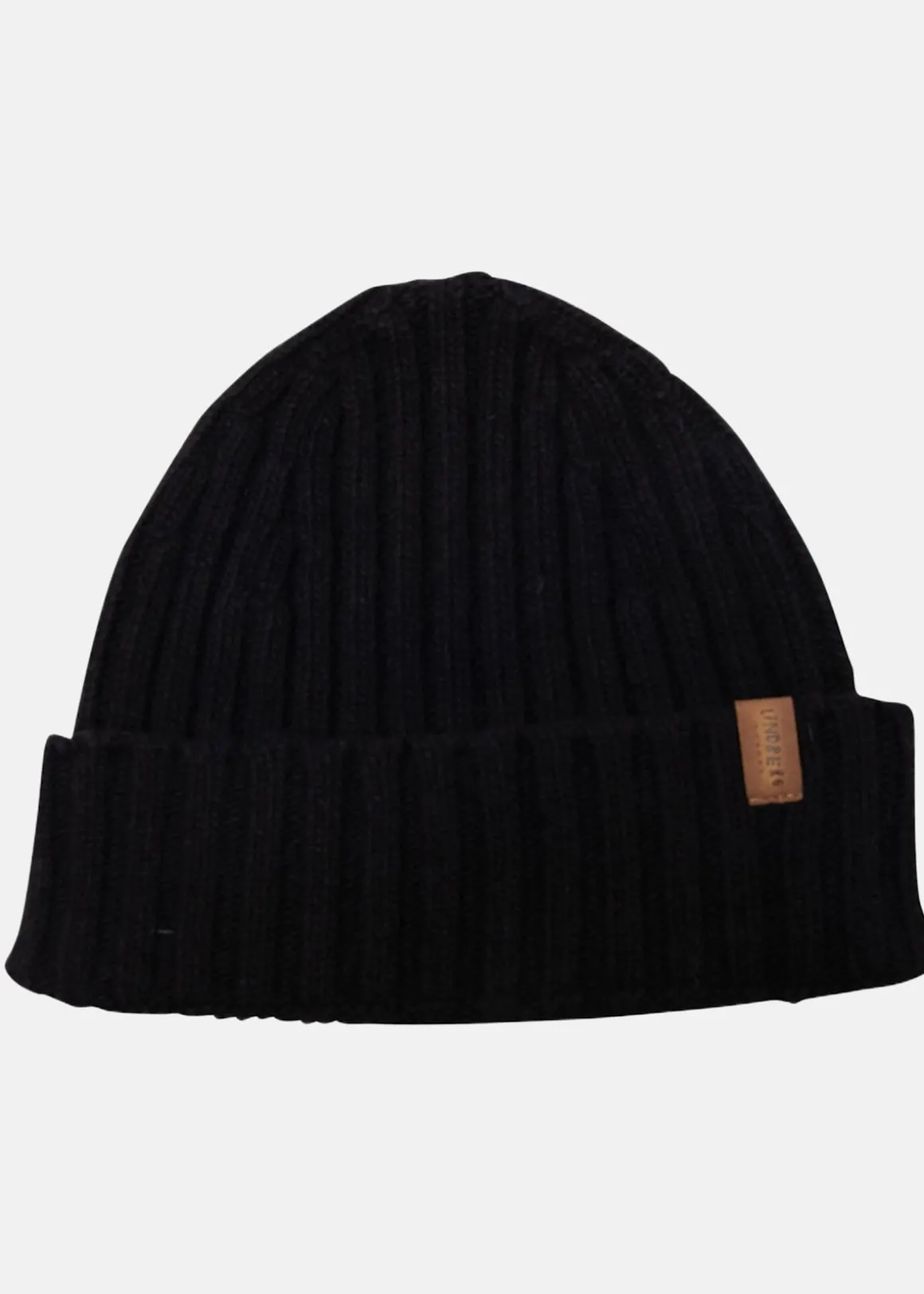 Stilren stickad mössa i ullmix från Lindberg. Mössan har en uppvikt kant med en logopatch på sidan.