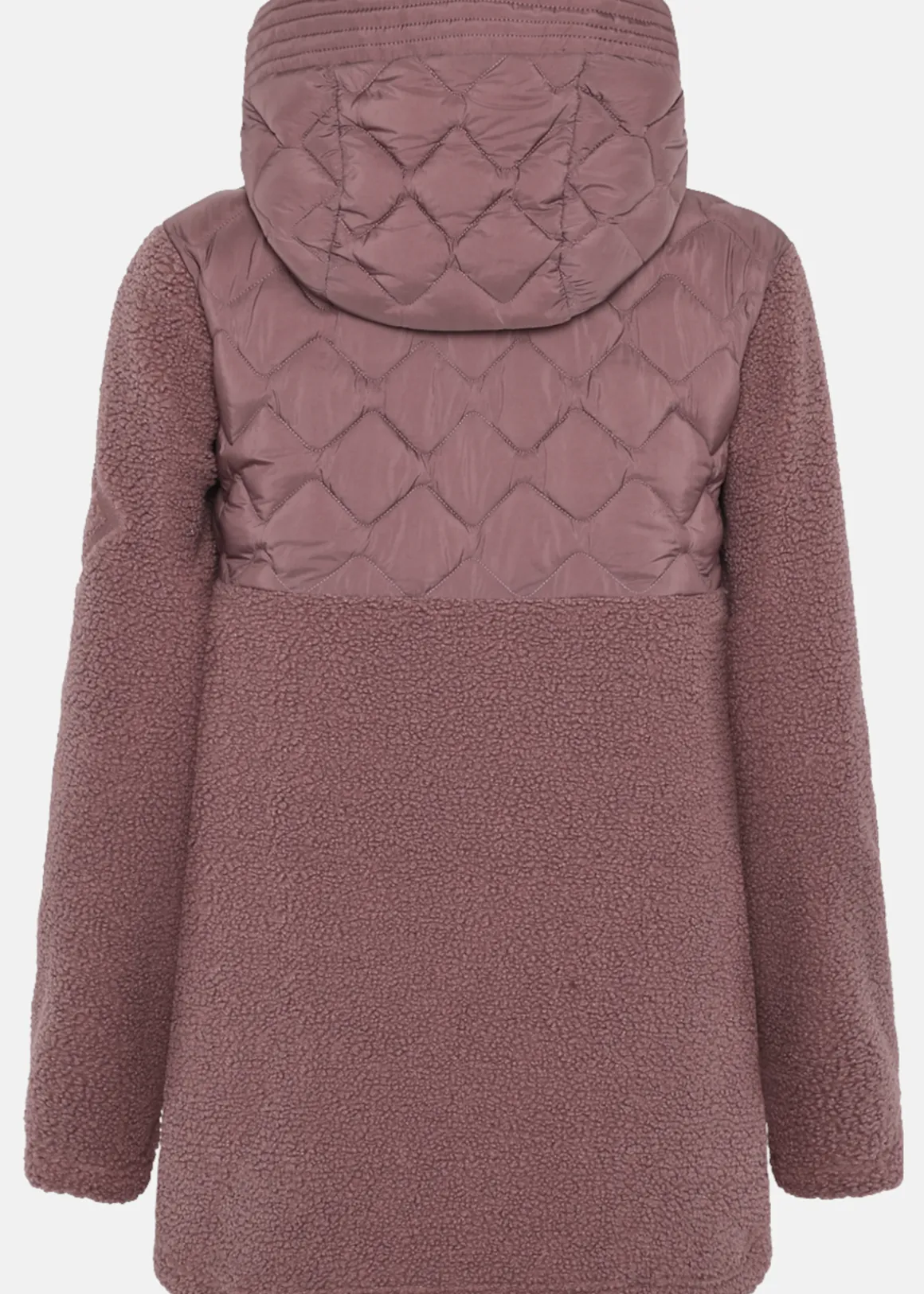 Den quiltade överdelen med lätt vaddering (60 g/m²) kombineras med mjuk teddyfleece för värme och komfort under kyliga dagar. Perfekt som mellanlager på vintern eller ytterplagg under torra höstdagar. Den fasta huvan med liten skärm skyddar mot kalla vindar, och den hel dragkedjan framtill gör tröjan lätt att ta av och på.