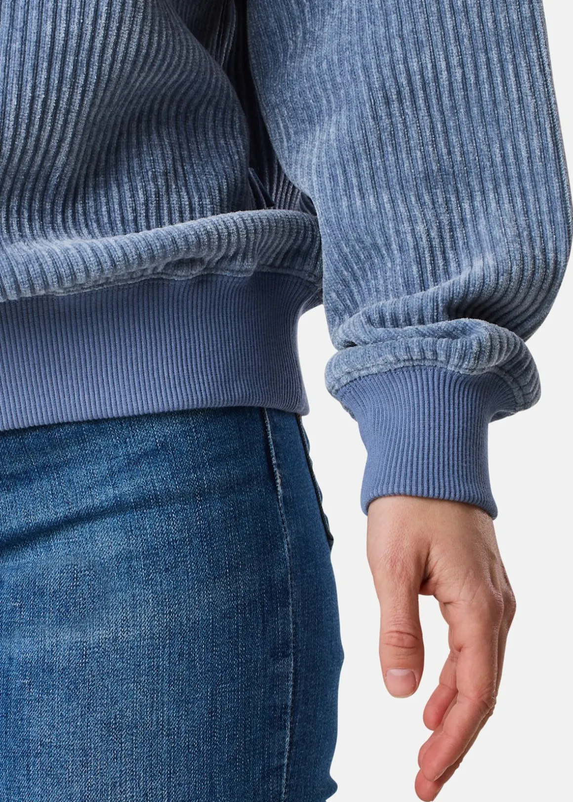 Denna ribbade tröja är tillverkad i ett mjukt och bekvämt material som består av 98% polyester och 2% elastan. Med muddar vid ärmslut och nedtill är den perfekt för en avslappnad vardag.