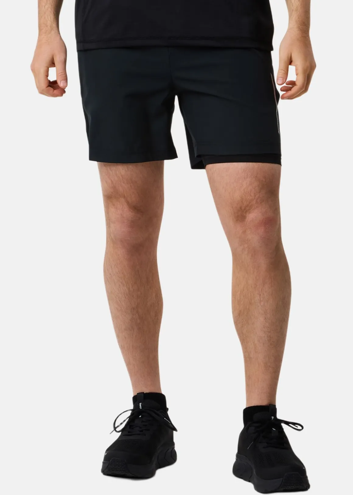 Dessa träningsshorts erbjuder en kombination av stöd och rörelsefrihet. Den integrerade innerbyxan ger kompression och säker passform, medan ytterschortsen bidrar med stil och komfort. Perfekt för intensiva träningspass.
