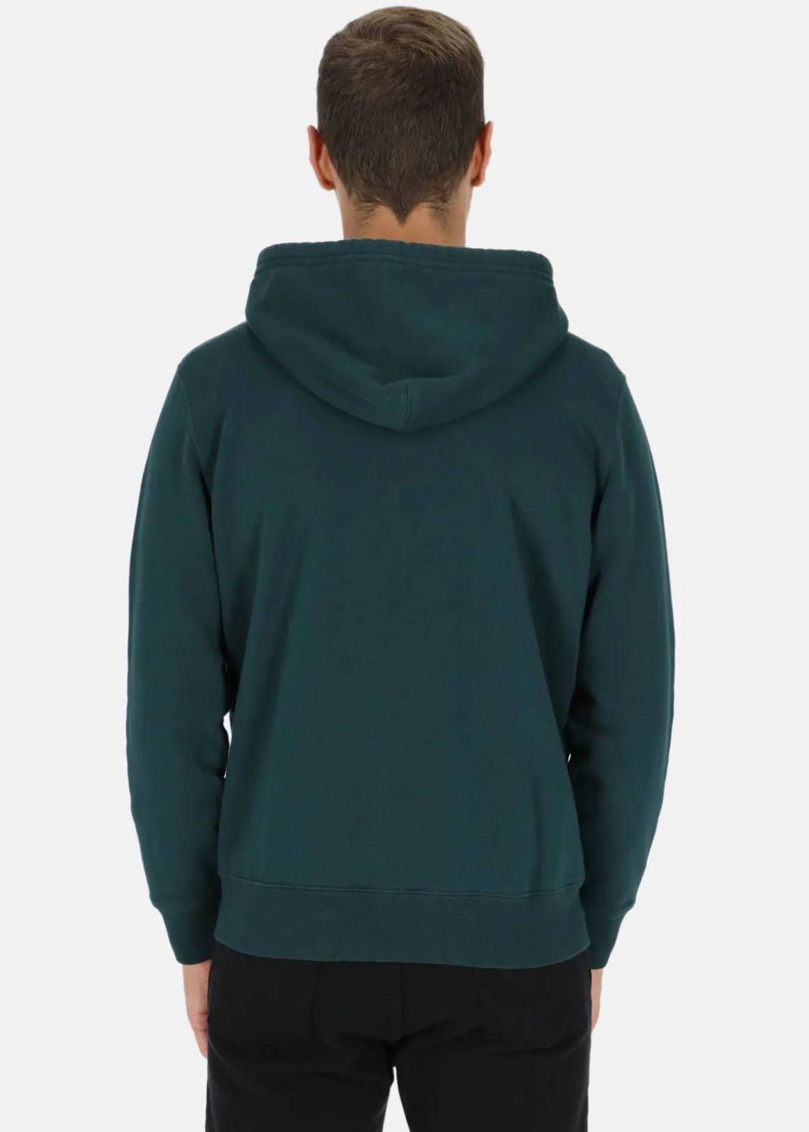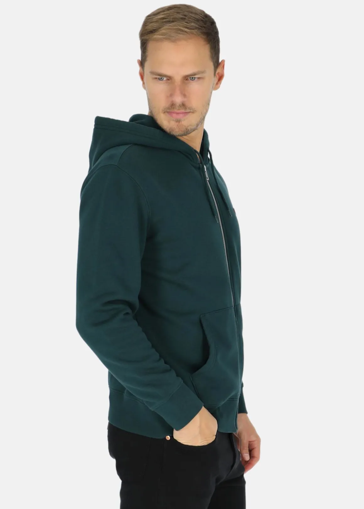 Mjuk tröja med huva och två fickor fram.