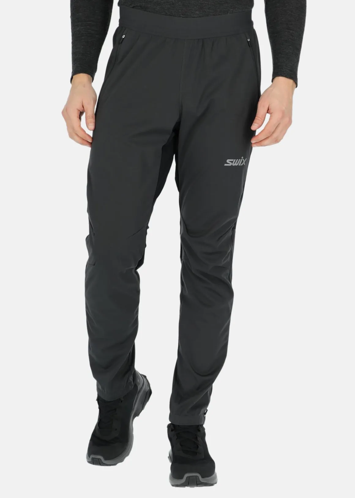 Vindtäta byxor från Swix. Byxorna har en lätt isolering och två fickor med blixtlås.