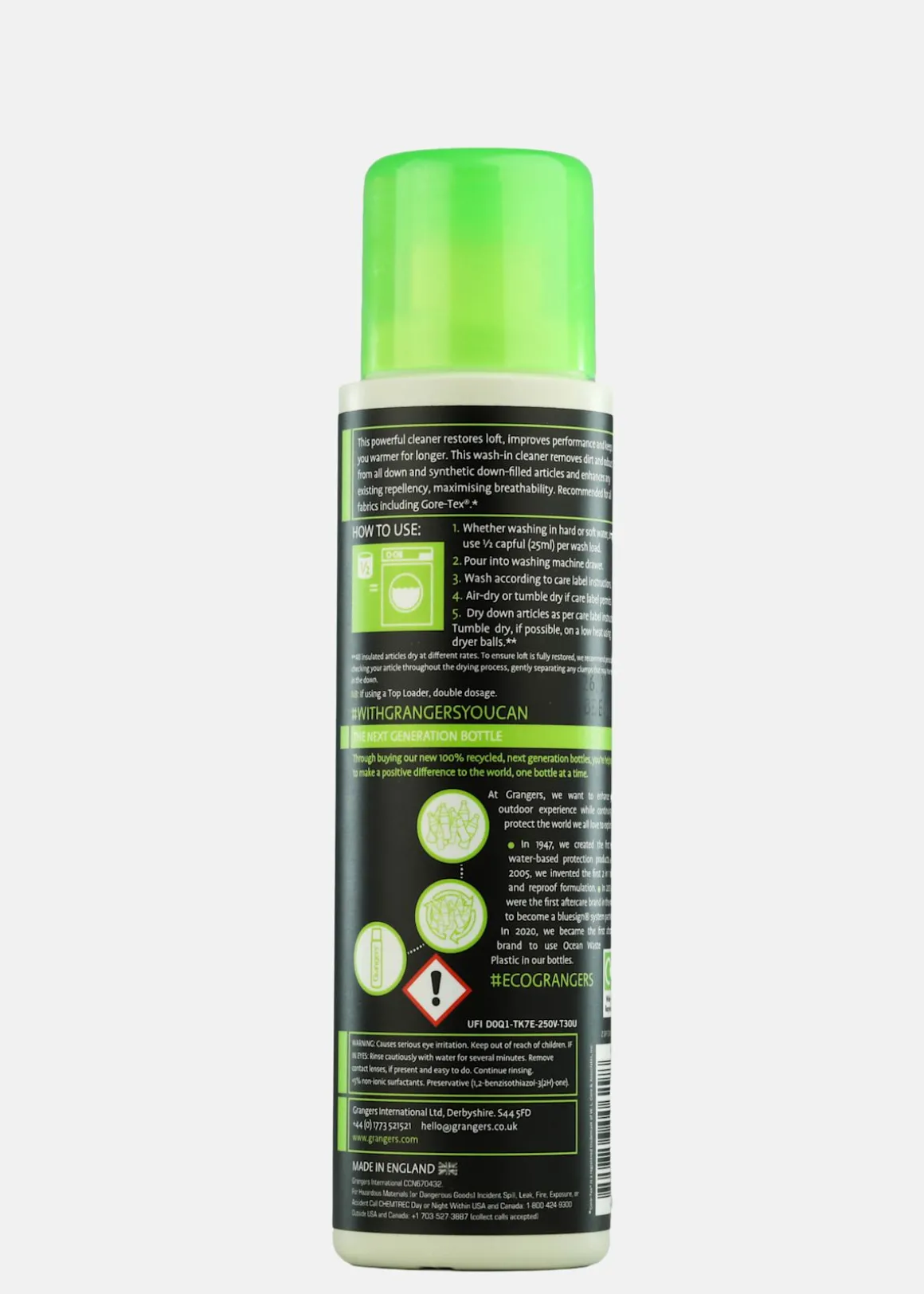 Grangers Down Wash är ett högkvalitativt tvättmedel som kombinerar kraftfull men skonsam rengöring för att hålla dina dun- och syntetiskt vadderade plagg och utrustning i toppskick. Tvättmedlet bibehåller plaggets andasfunktion och vattenavvisande egenskaper, samtidigt som det effektivt neutraliserar dålig lukt och avlägsnar smuts. Bluesign®-godkänd och fri från PFAS, erbjuder denna produkt en miljövänligare lösning som räcker till 12 tvättar.