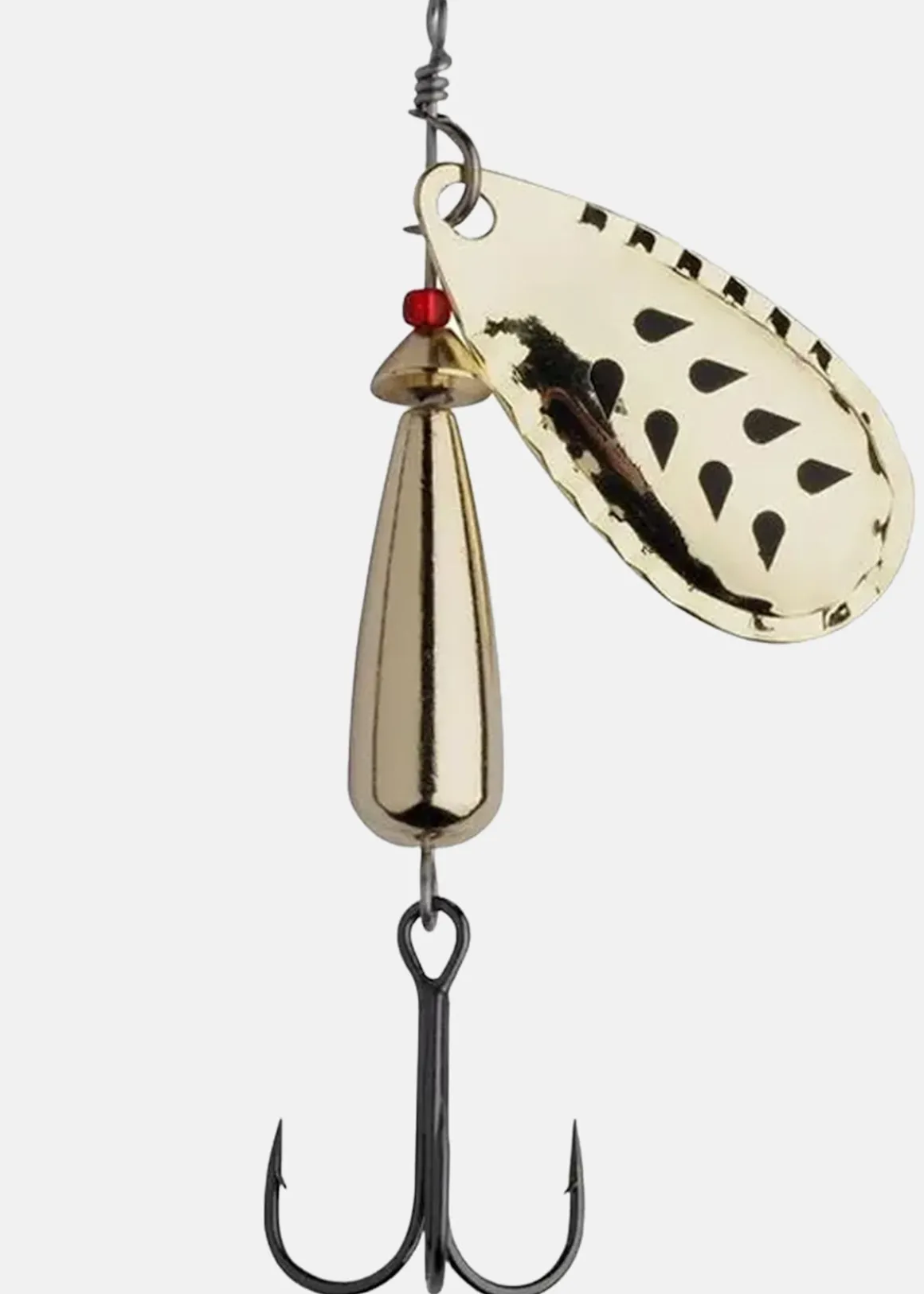Ögla för fiskelinan och en vass trekrok undertill för ett lyckat fiske.