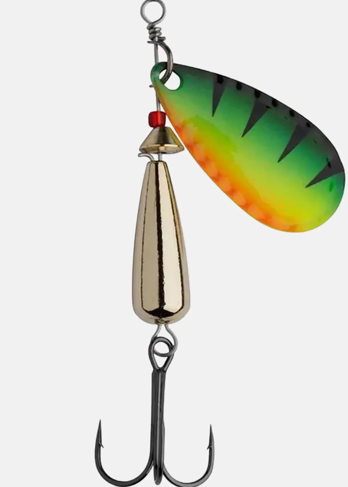 Ögla för fiskelinan och en vass trekrok undertill för ett lyckat fiske.