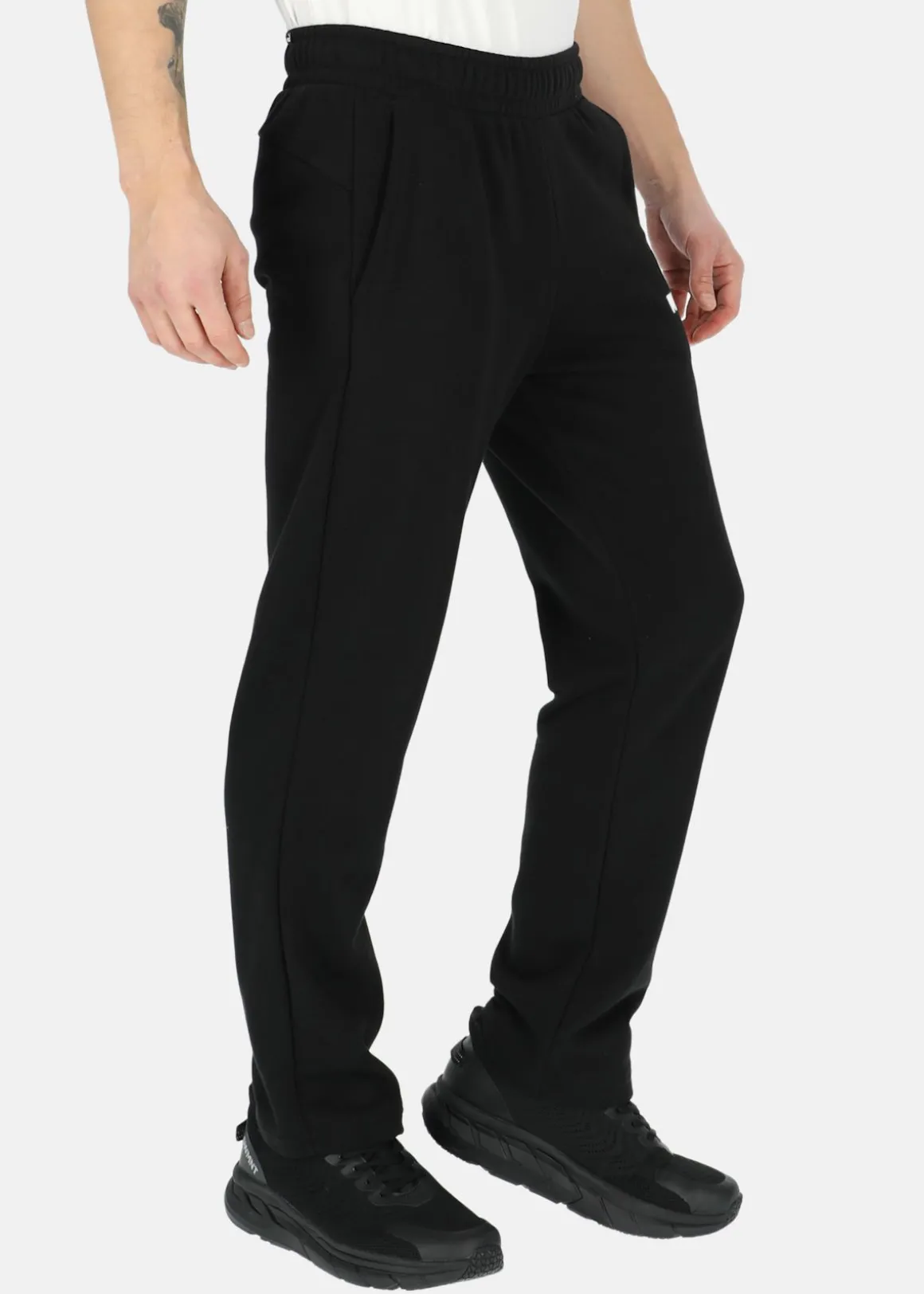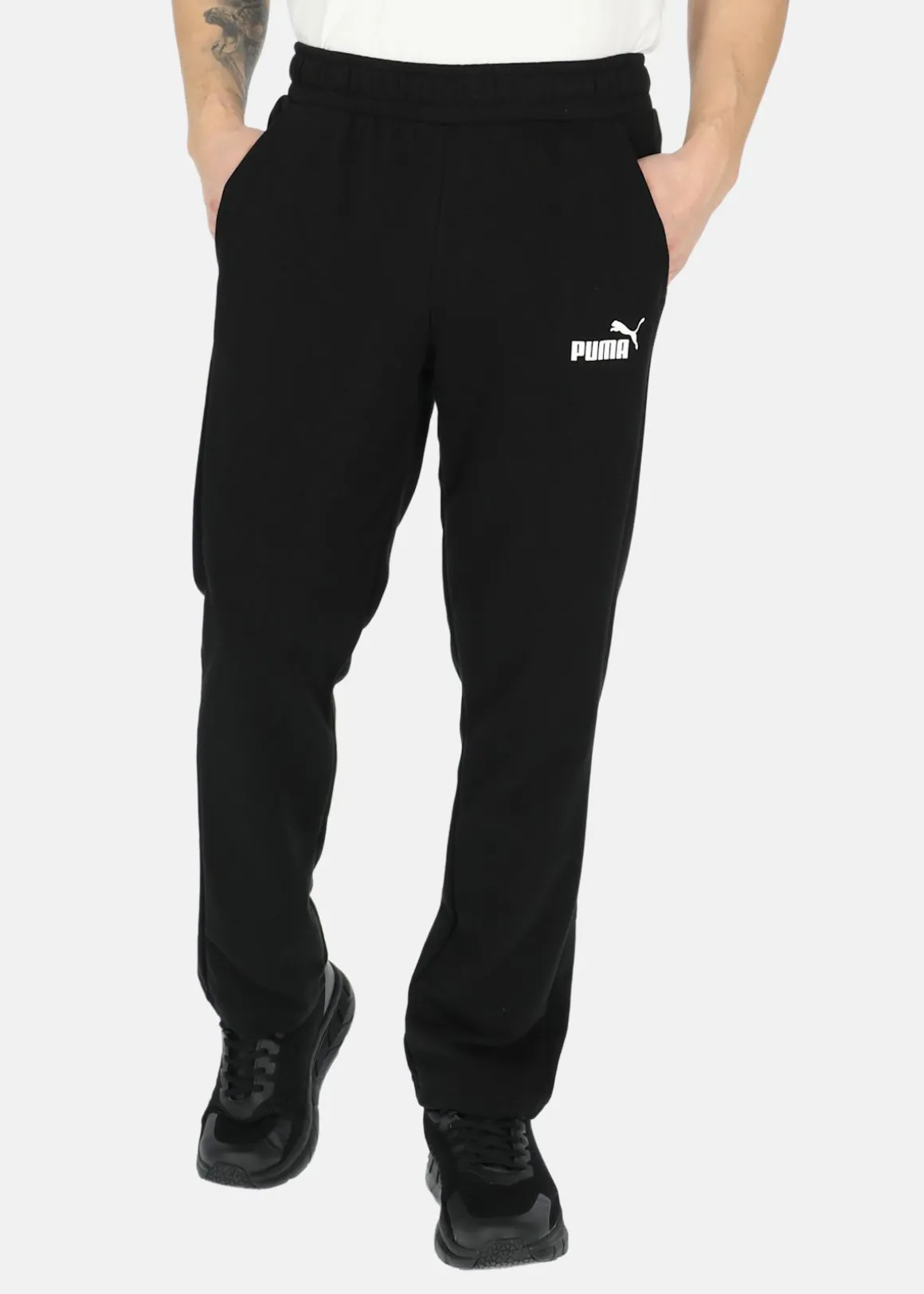 Dessa byxor har en enkel och rak passform, med en elastisk midja som kan justeras med hjälp av en dragsko för optimal komfort. Praktiska sidofickor ger plats för dina personliga tillhörigheter medan PUMAs ikoniska logga pryder vänster ben och ger en stilfull touch till plagget. Dessa byxor kombinerar funktionalitet och design på ett snyggt sätt.