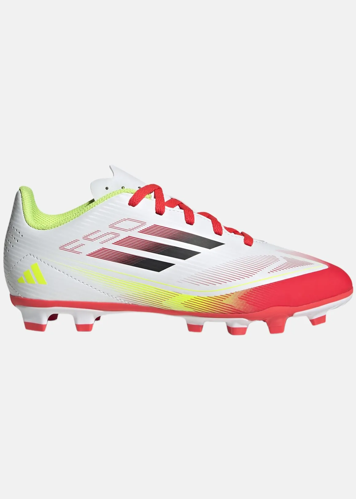 adidas F50-skor för juniorer är designade för snabbhet och komfort på planen. Med en stödjande Fiberskin-ovandel och perforerad plös erbjuder de optimal passform och ventilation. Den mångsidiga yttersulan ger utmärkt grepp på både fasta underlag och konstgräs. Skorna innehåller minst 20 % återvunnet material, vilket bidrar till att minska miljöpåverkan.